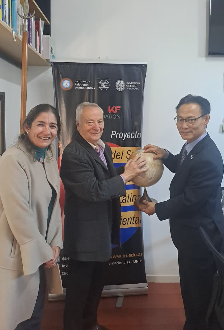 Asimismo, el Embajador recorrió el Korea Corner (Rincón Coreano), instalado en 2019 en la Universidad Nacional de La Plata, donde donó un globo terráqueo y expresó su deseo de que dicho espacio continúe desempeñando un rol fundamental en la promoción del conocimiento sobre Corea y la difusión de la cultura coreana.