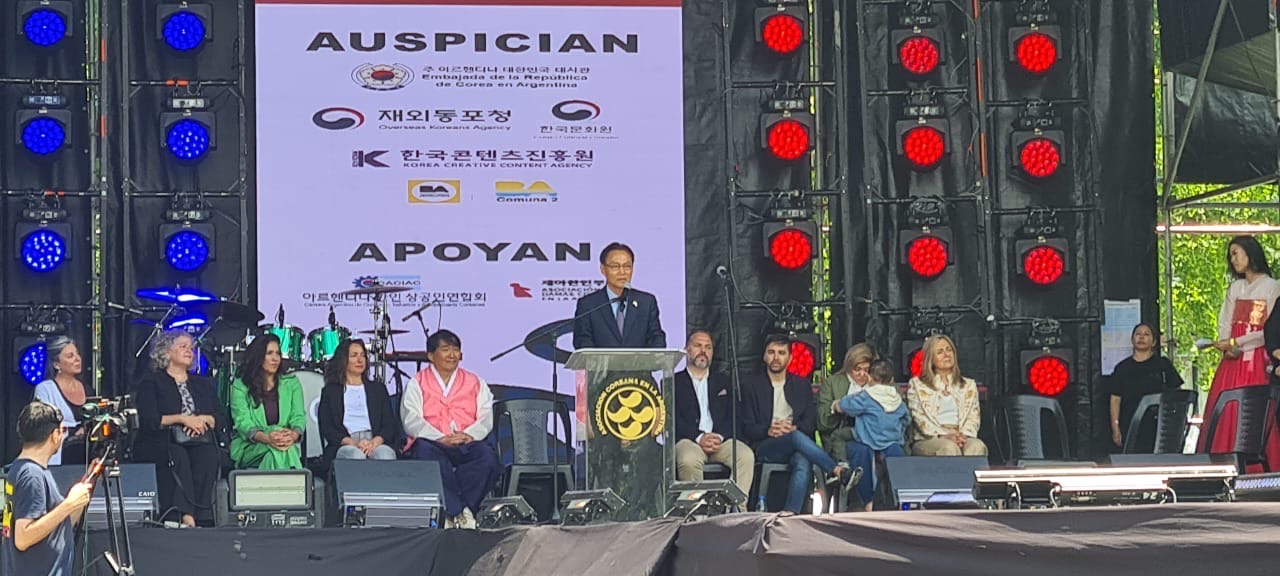 우리 대사관 이용수 대사는 축사를 통해 한인 이민 60주년을 기념하는 뜻깊은 해에 열린 이번 행사가 양국 국민 간 우정과 상호 이해를 더욱 깊게 하는 계기가 되기를 바란다고 하였습니다. 또한 한인회 등 동포단체와 부에노스아이레스 시정부 등 주재국 관계기관의 노고에 감사의 뜻을 전하고, 지난 60년간의 협력과 신뢰를 바탕으로 공동번영의 새로운 60년을 위해 함께 나아가자고 당부하였습니다.