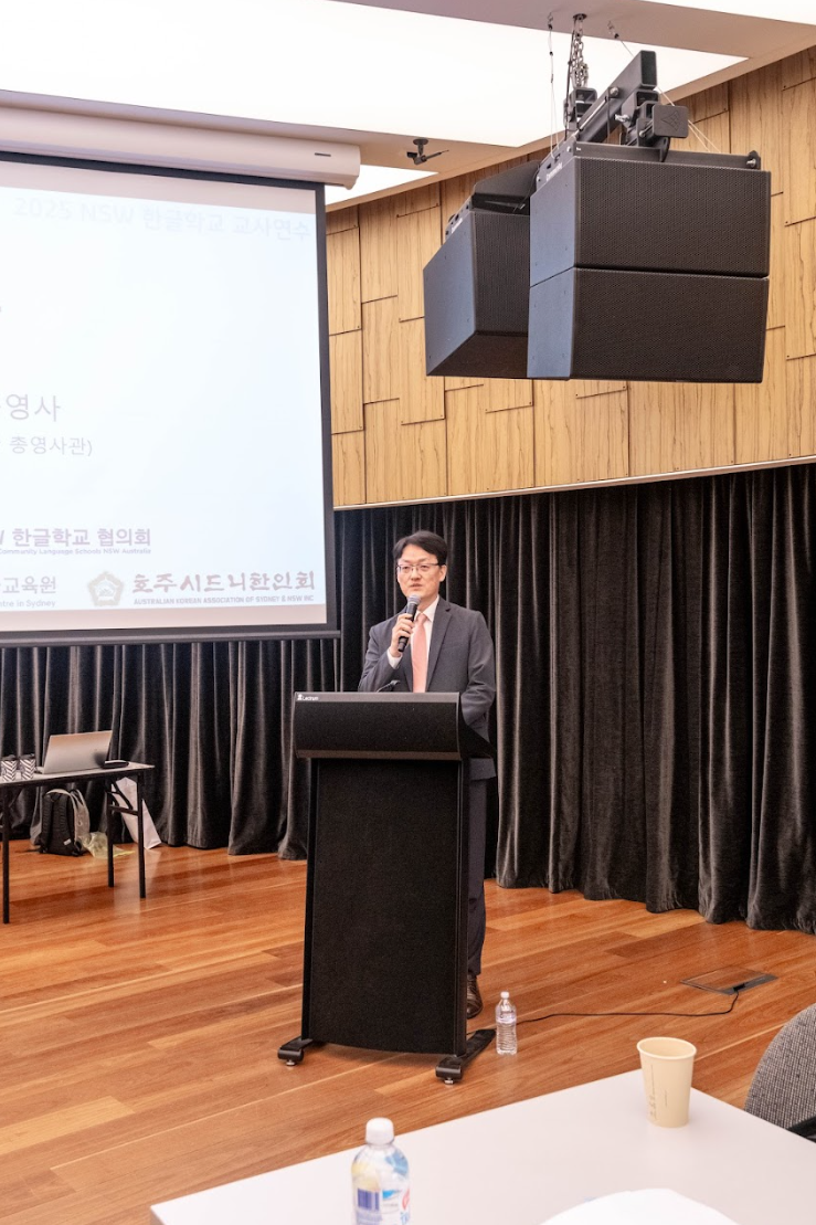 A total of 94 teachers from 16 Korean language schools in the Sydney area participated in the event, held under the theme “Dreaming of Happy Teachers, Growing as Teachers.” The program featured practical lectures aimed at enhancing teachers’ instructional skills and professional development. It also provided a valuable opportunity for networking and the exchange of experiences among teachers.