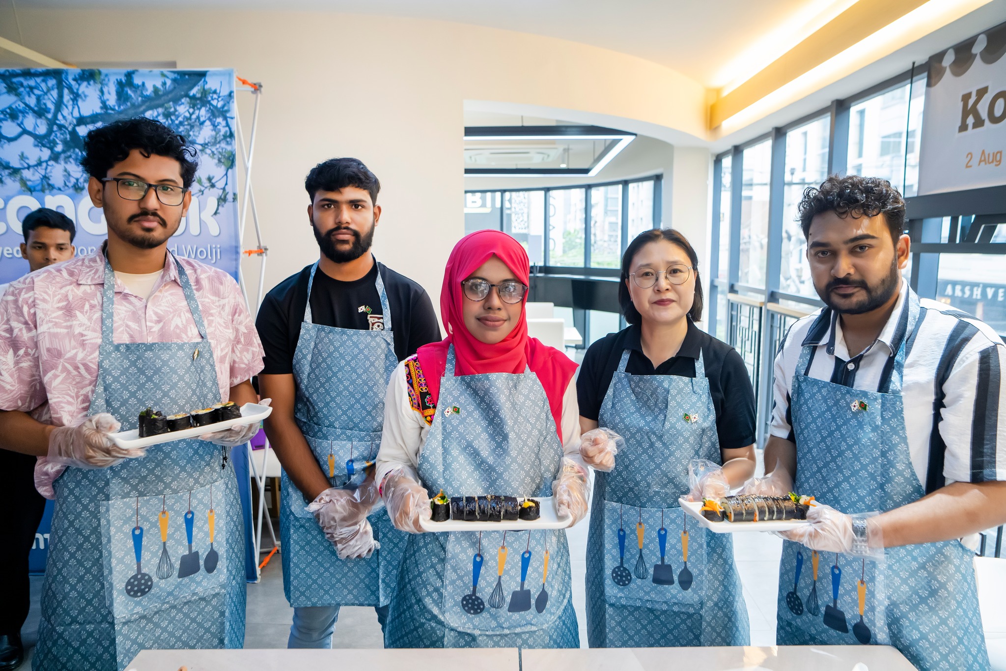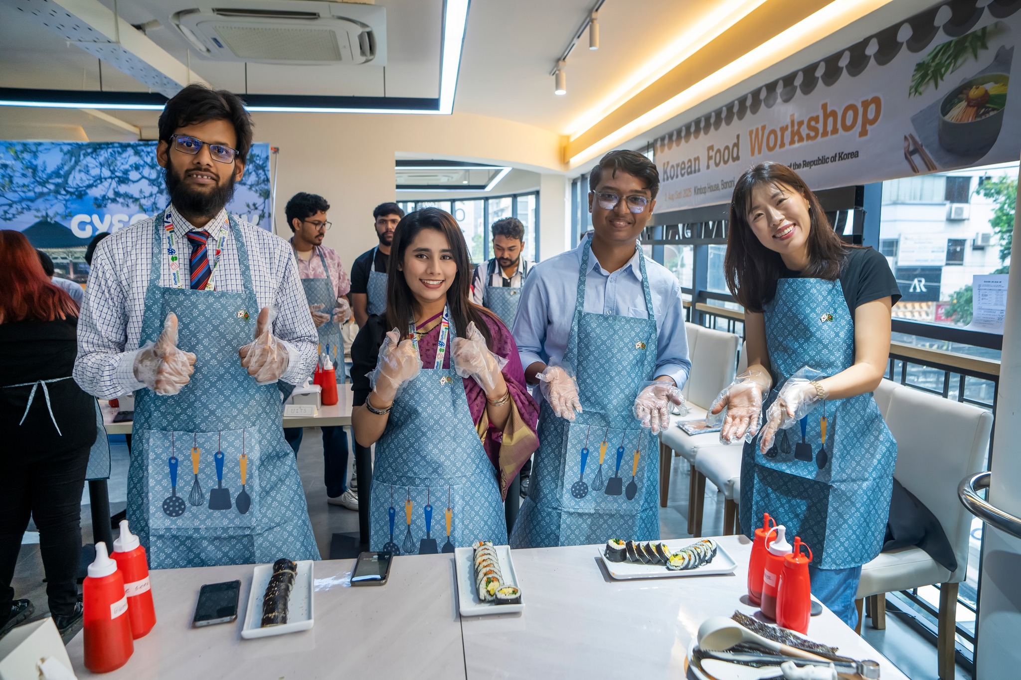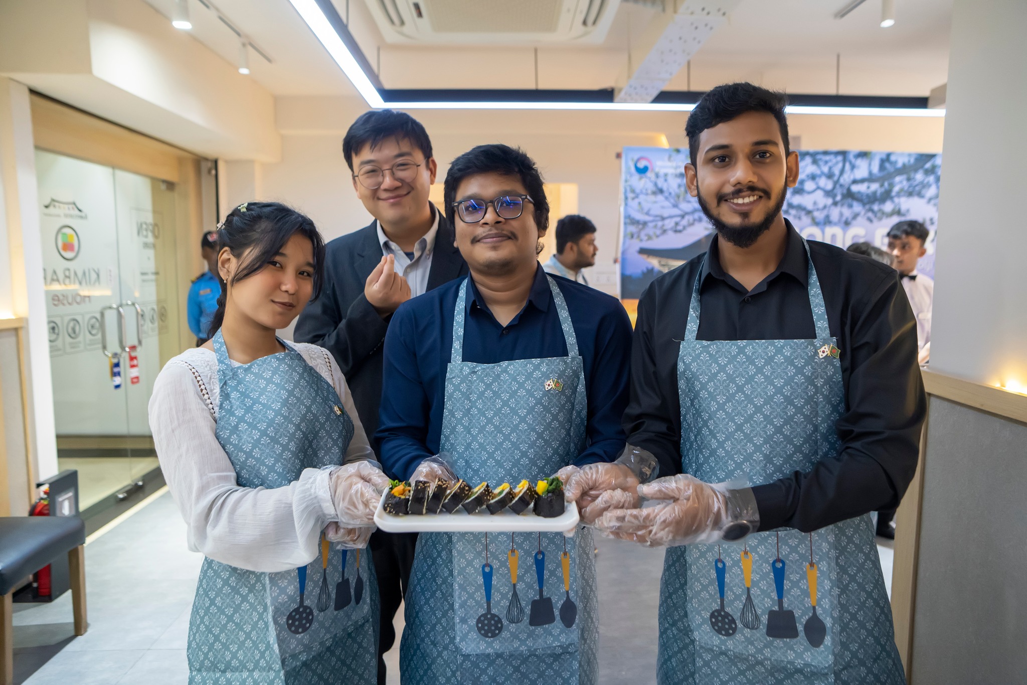 The Embassy of the Republic of Korea held a [Korean Food Workshop] at the Kimbap House in Benani, Dhaka on August 2. (Saturday). The workshop, which was held as part of the [2025 Korean Culture Week], was attended by 20 university students from [Daffodil International University (DIU)], [Canadian University Bangladesh (CUB)], [Independent University, Bangladesh (IUB)], and the [University of Information and Technology Science (UITS)] to make and experience the Korean foods like Kimbap, Bibimbap, Tteokbokki, and Kimchi also.