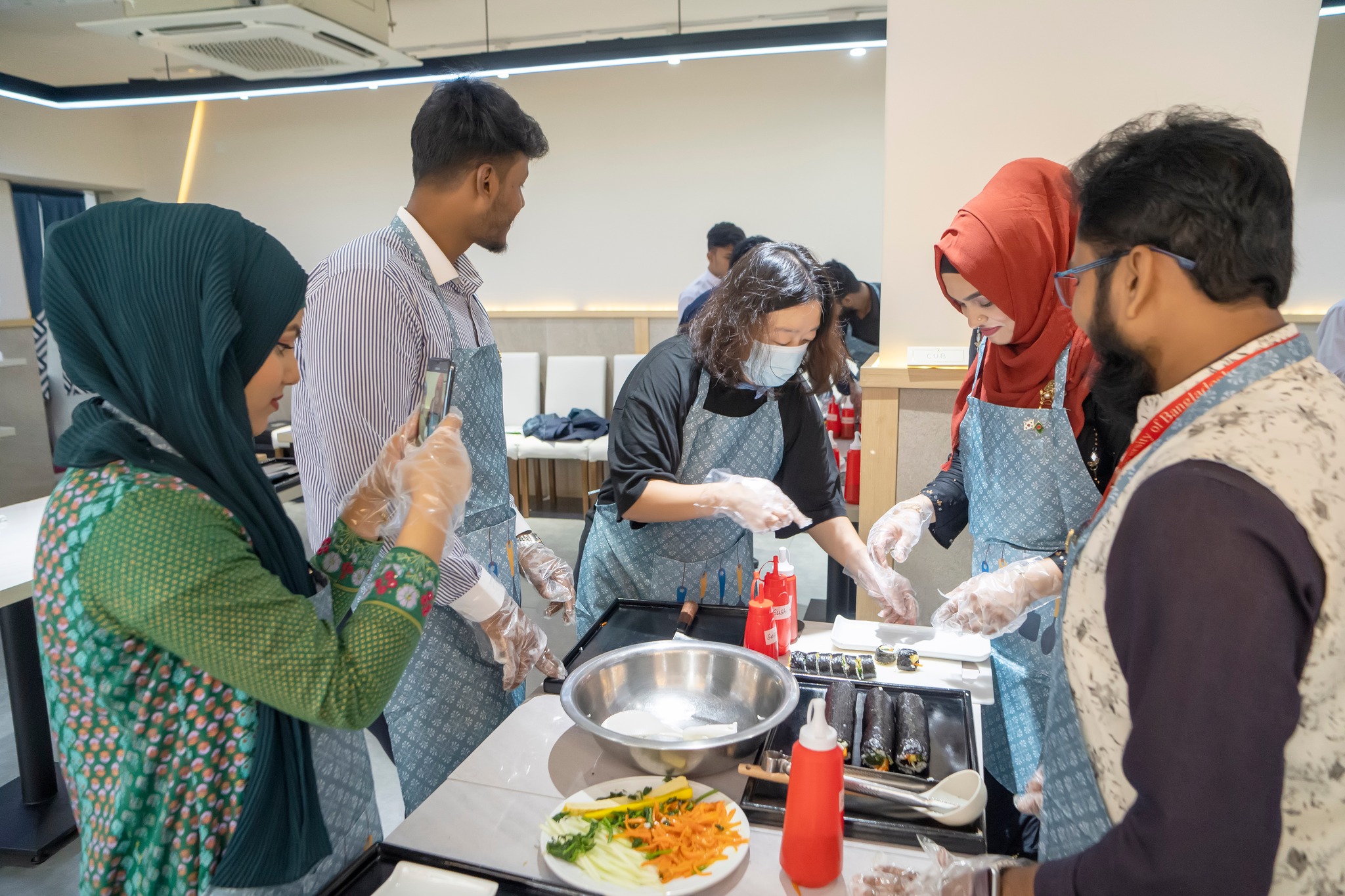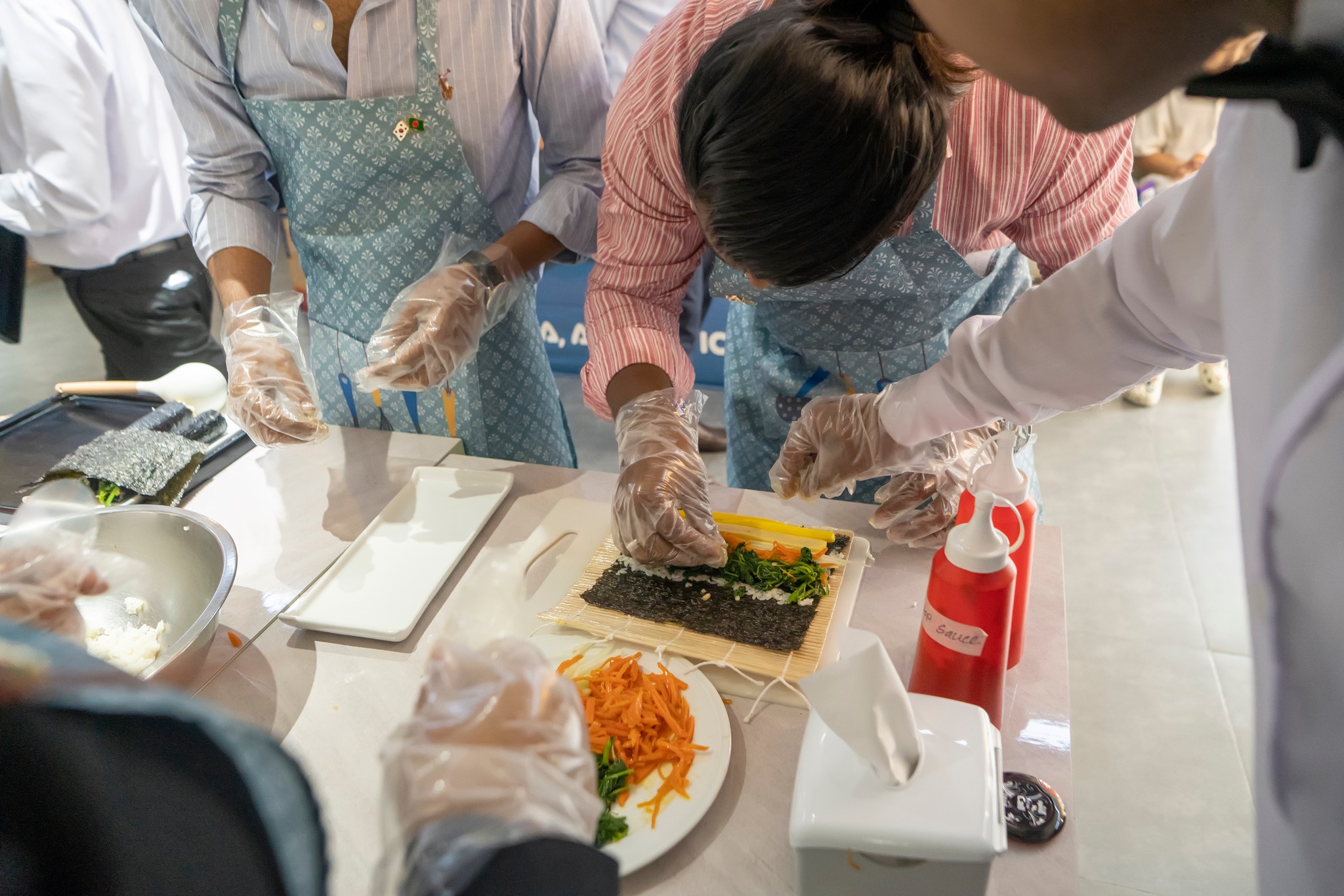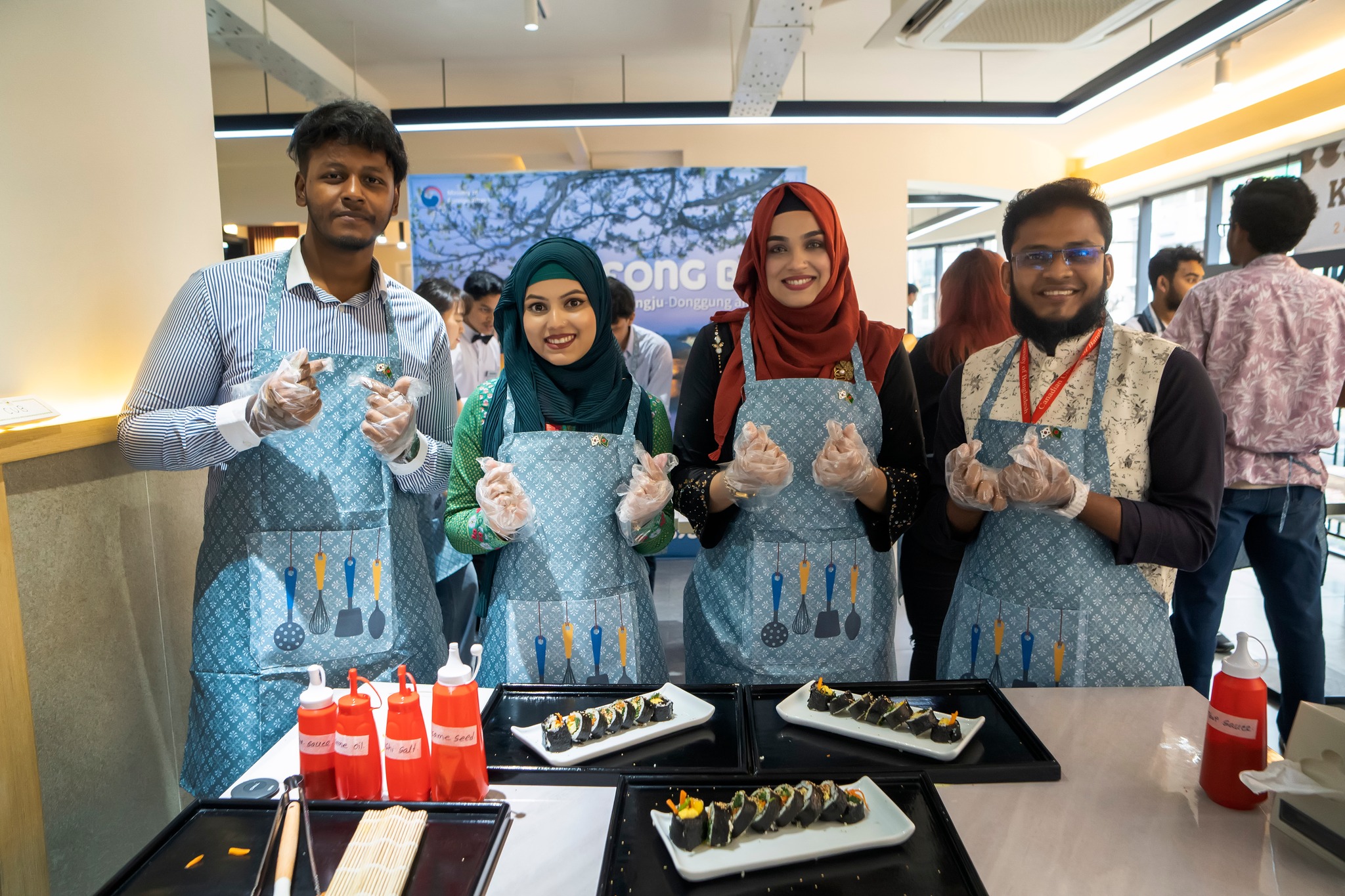 The Embassy of the Republic of Korea held a [Korean Food Workshop] at the Kimbap House in Benani, Dhaka on August 2. (Saturday). The workshop, which was held as part of the [2025 Korean Culture Week], was attended by 20 university students from [Daffodil International University (DIU)], [Canadian University Bangladesh (CUB)], [Independent University, Bangladesh (IUB)], and the [University of Information and Technology Science (UITS)] to make and experience the Korean foods like Kimbap, Bibimbap, Tteokbokki, and Kimchi also.