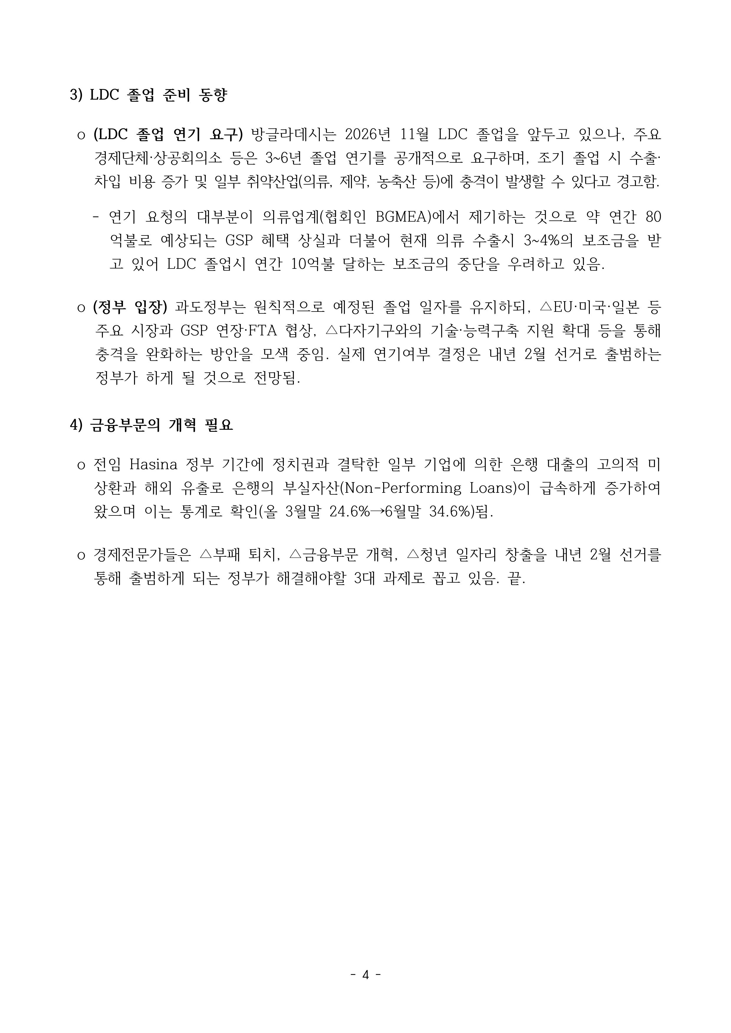 방글라데시 FY25 4분기(25.4-6월) 경제 동향