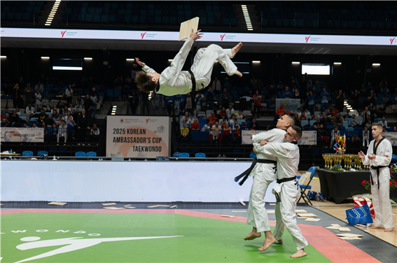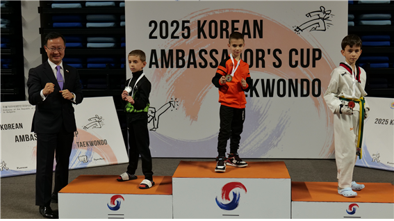 우리 대사관은 2025년 한국대사배 태권도대회를 불가리아 사모코프 市에서 2025.12.13.(토) 성황리에 개최하였습니다. 한국대사배 태권도 대회는 예산 사정 등으로 인해 지난 3년 간 중단되었다가 올해 김동배 대사가 불가리아에 부임하면서 「태권도진흥재단」의 지원을 받아 재개되었습니다.