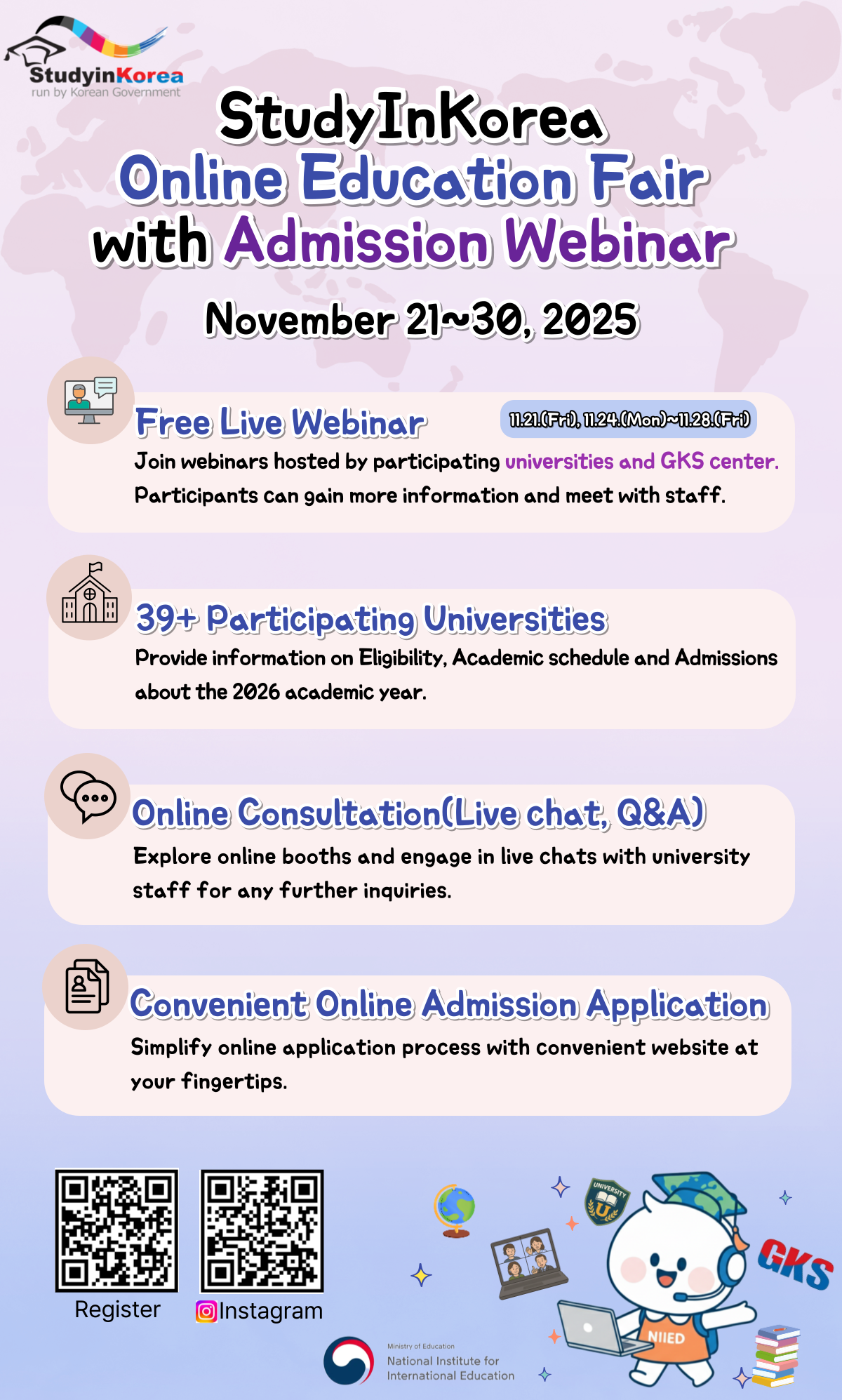 ㅇ Plataforma: www.studyinkorea.go.kr