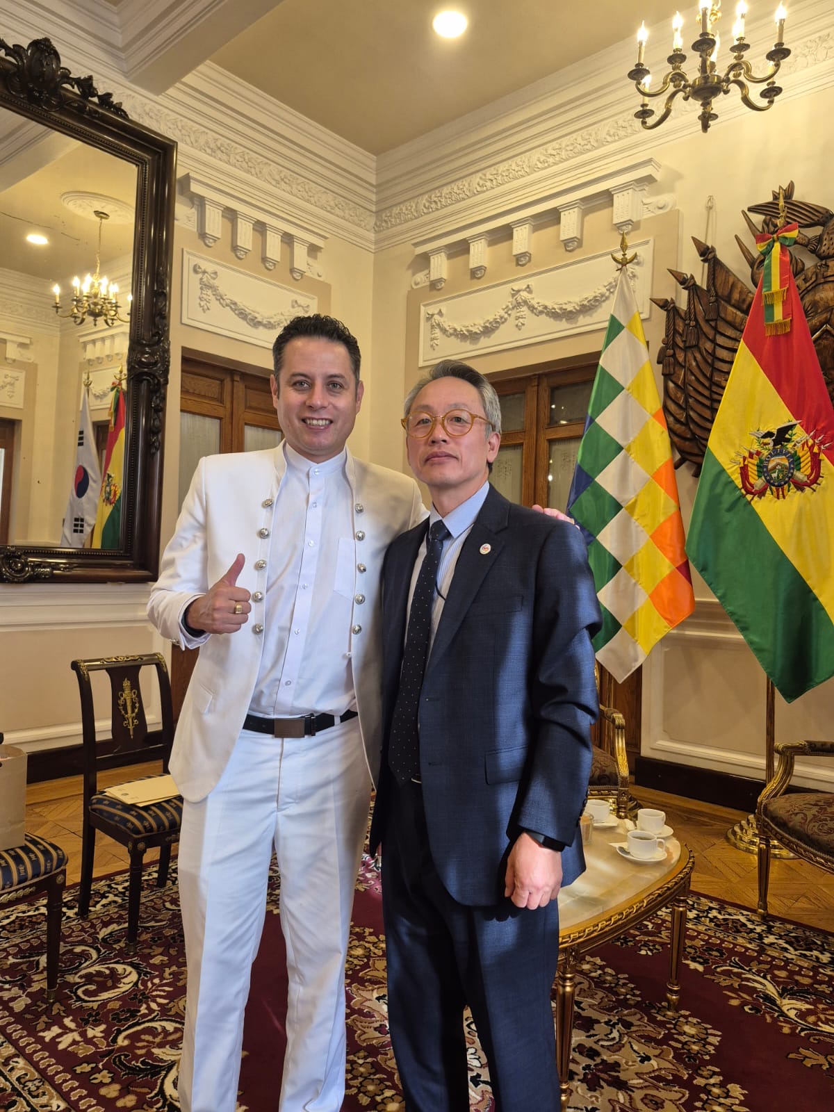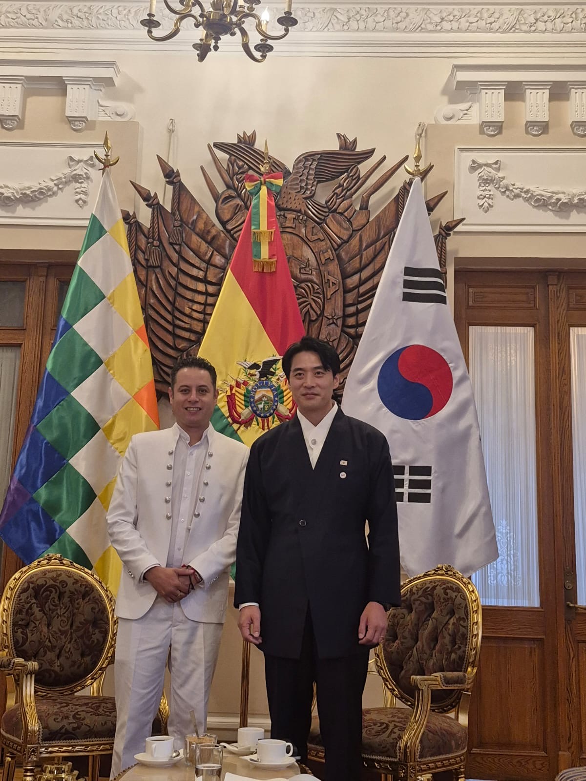 볼리비아 신임 대통령 취임식(11.8) 경축 특사로 파견된 한준호 특사는 11.8(토) 오전 에드만 라라(Edmand Lara) 신임 부통령을 예방.면담하고 에너지자원, 기후변화 대응 등 양국간 제반 협력사안에 대해 의견을 교환하였으며, 볼리비아를 찾는 많은 한국인 관광객 및 동포사회의 안전을 특별히 당부하였습니다 (이장 주볼리비아대사 참석)