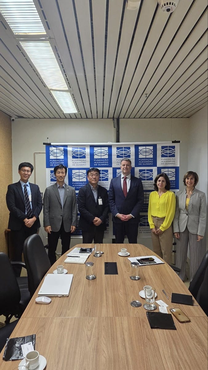O professor Ha Sang Sub, do Instituto de Estudos de Diplomacia e Segurança (IFANS) da Academia Diplomática Nacional da Coreia, visitou nesta sexta-feira (10/10) a Fundação Alexandre de Gusmão (FUNAG), vinculada ao Ministério das Relações Exteriores do Brasil. Durante a visita, reuniu-se com o Sr. Leandro Moll, Chefe da Divisão das Nações Unidas, a Sra. Giuliana Ciccu, Chefe da Divisão da Península Coreana e Japão, e a Sra. Elisiane Rubin Rossato, Chefe da Assessoria de Assuntos Institucionais, para trocar opiniões sobre a política externa do Brasil.