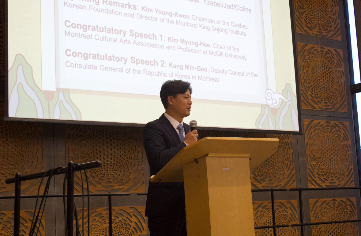 이날 축사에서 강 직무대리는 몬트리올에서 한글창제기념식이 개최된 것을 축하하며, "캐나다 상원이 지난해 10월을 ‘한인문화유산의 달’로 공식 지정한 것은 캐나다가 한인 커뮤니티의 공헌을 국가 차원에서 인정한 역사적 결정으로, 이는 한인 사회의 성취이자 한국과 캐나다 간 깊어진 우정의 상징”이라고 강조하였습니다. 또한 “세종대왕의 한글 창제 정신은 오늘날 캐나다가 중시하는 개방성, 포용성, 다양성 존중의 가치와 맞닿아 있다”고 언급하며, “이번 기념식이 양국의 우정을 더욱 돈독히 하는 계기가 되길 바란다”고 하였습니다.