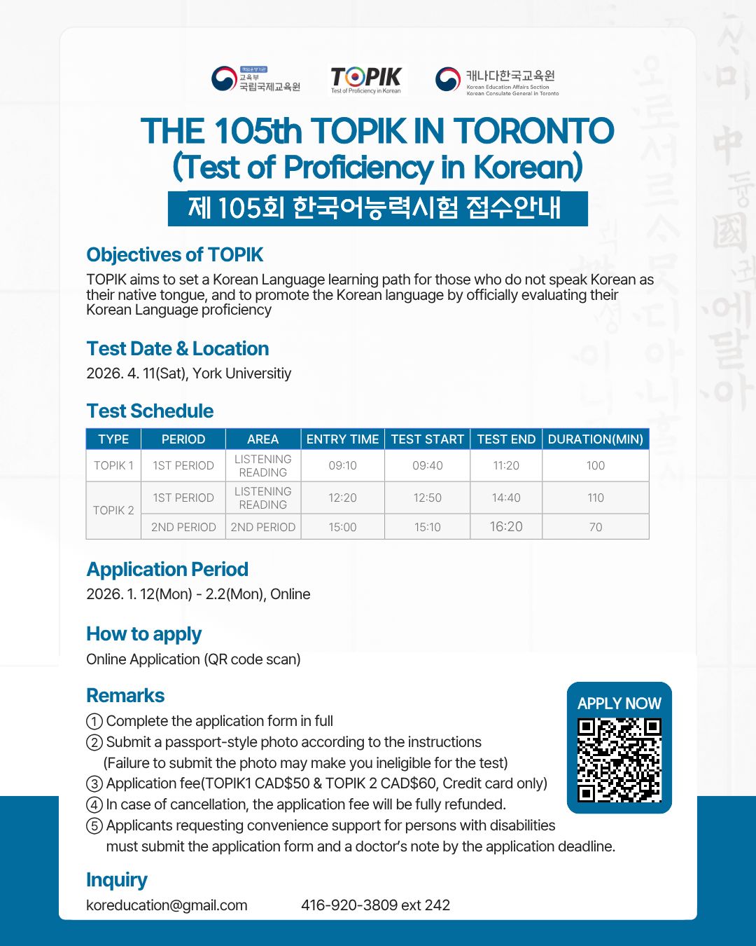 5. 접수 방법: 온라인 접수 - https://www.cakec.com/events/the-105th-topik