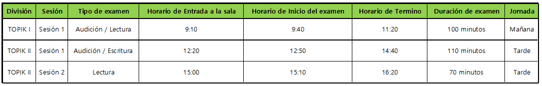 Se debe portar cédula de identidad o pasaporte y la ficha de inscripción TOPIK impresa.