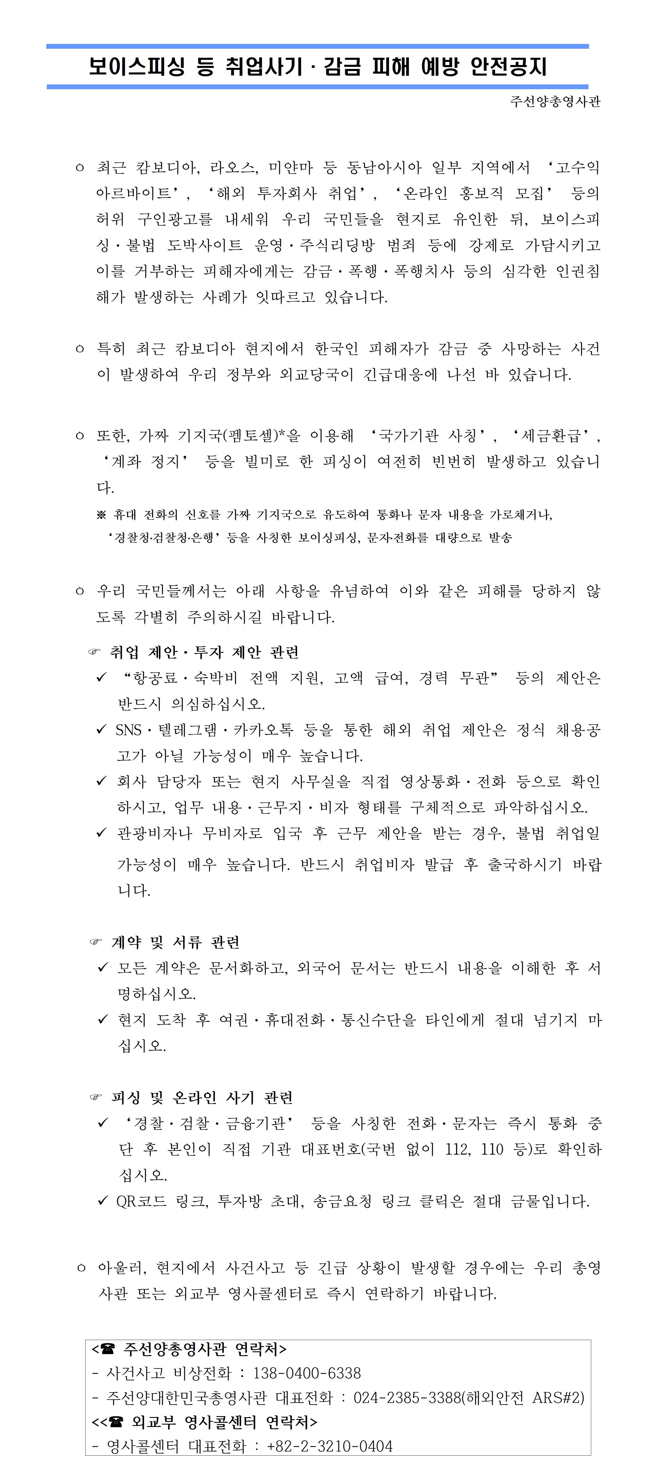보이스피싱 등 취업사기 감금 피해 예방 안전공지
