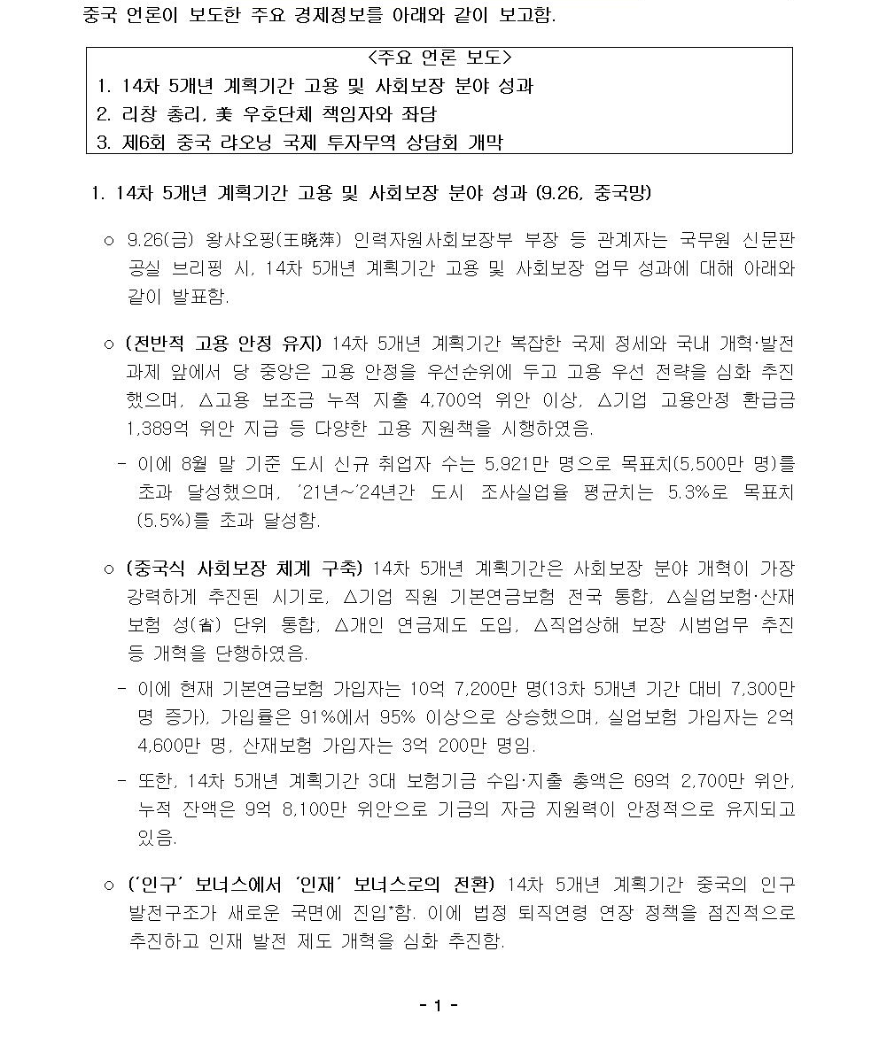 [25.9.26] 14차 5개년 계획기간 고용 및 사회보장 분야 성과 등