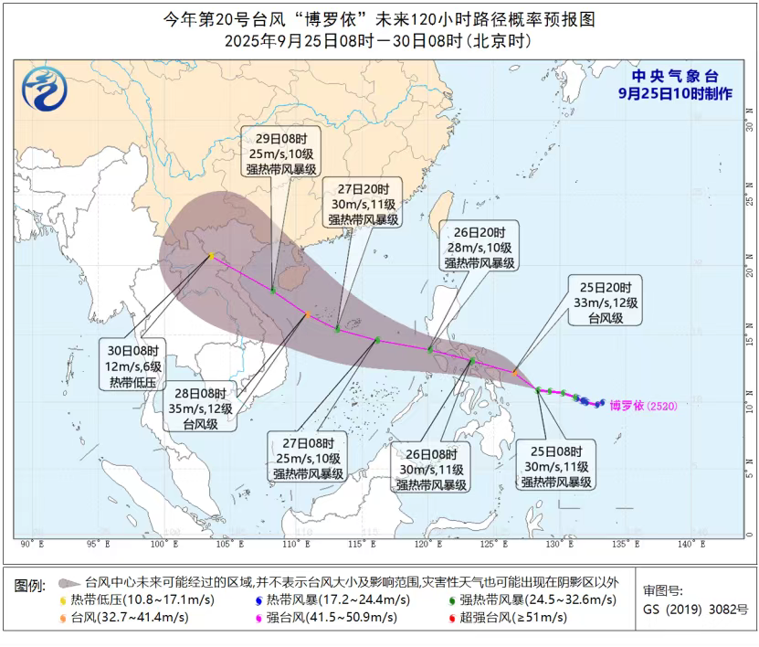 ㅇ 중국 중앙기상대는 제20호 태풍 '부알로이'가 9.25.(목) 05:00경 필리핀 마닐라 동쪽 해상에서 북서쪽으로 이동(11급, 30m/s)하고 있으며, 9.27.(토) 새벽 남중국해 동부 해역에 진입하여 북서쪽으로 이동하면서 세력이 강화할 것으로 예측하였습니다.