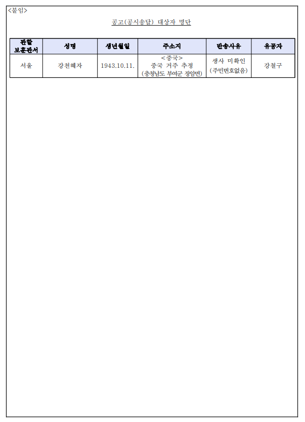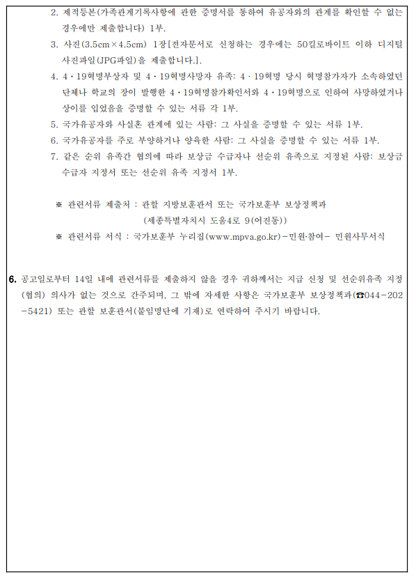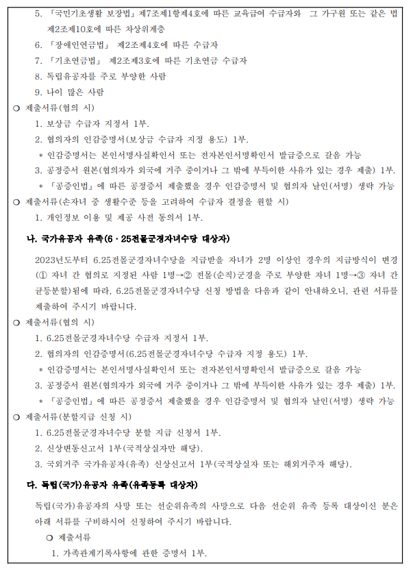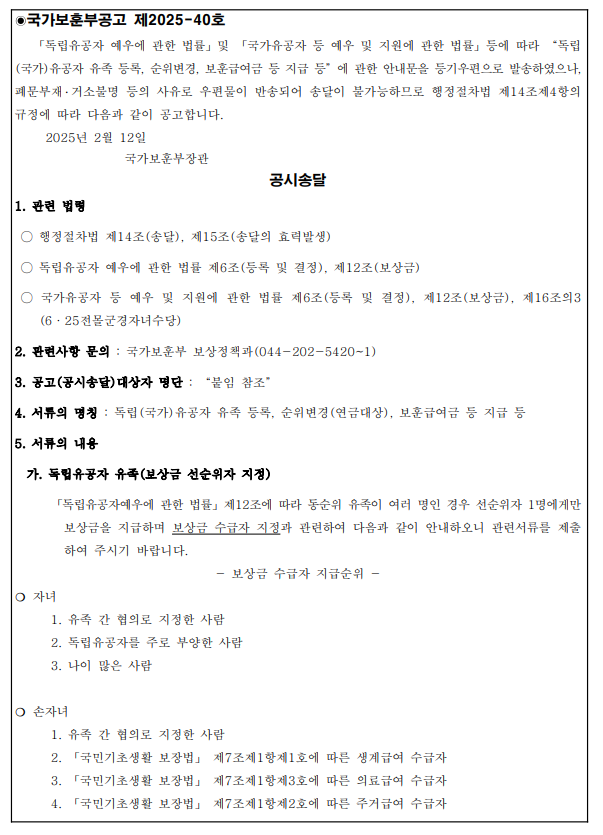 국가보훈부 공고 제2025-40호 (독립(국가)유공자 유족 보훈급여금 지급 관련)