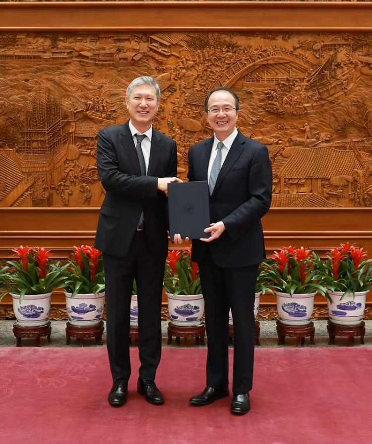 오전 중국 외교부에 신임장 사본을 제출하고 공식 업무를 시작하였습니다