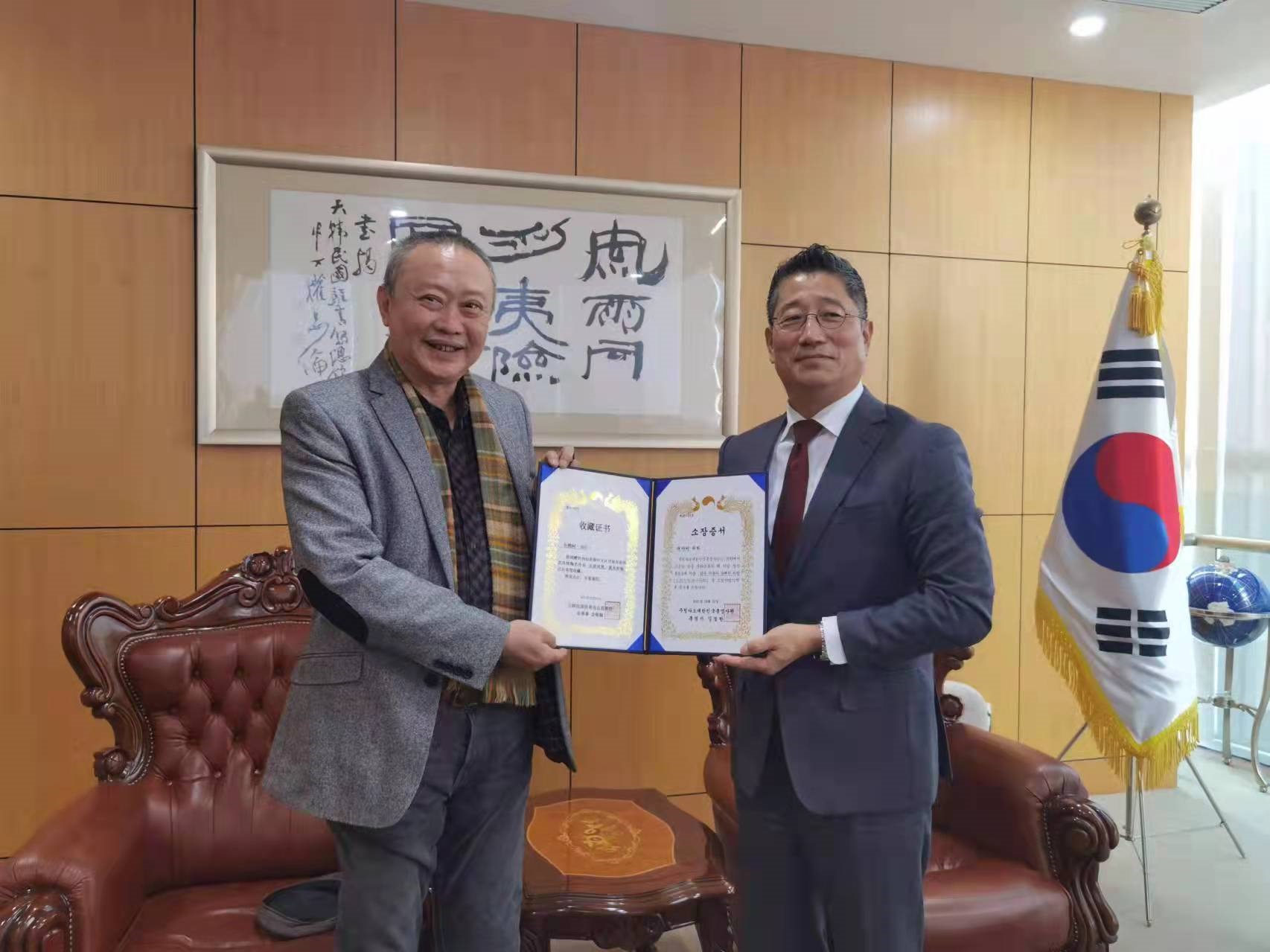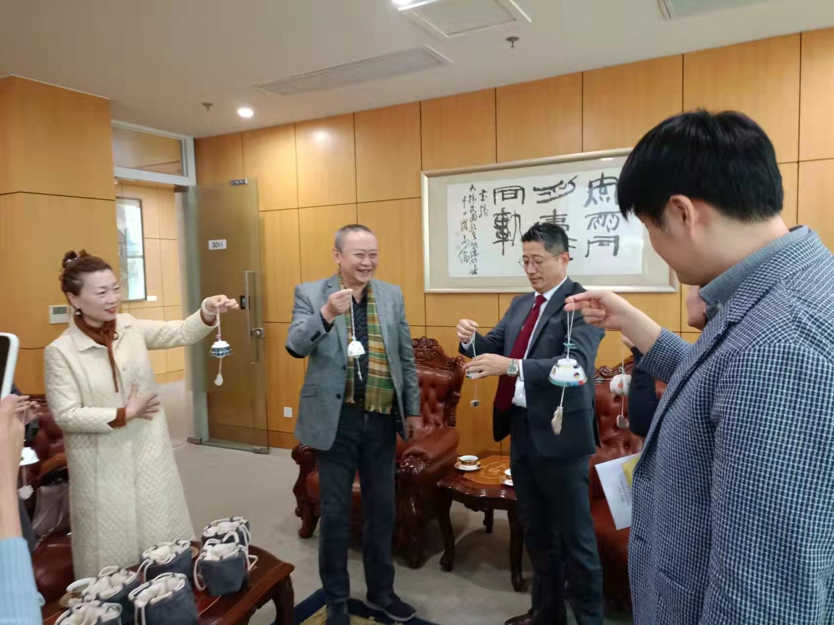 12月1日(周三), 金敬翰总领事与青岛大学陶瓷专业许雅柯教授一行面谈,并就韩中文化艺术领域合作方案和扩大交流方案交换了意见。许教授在“庆祝中韩文化交流系列活动 第二篇 风铃陶艺”中出镜,通过“风铃”分享了韩中友谊的美好记忆,并将亲手制作的六件风铃作品赠送给总领事馆。