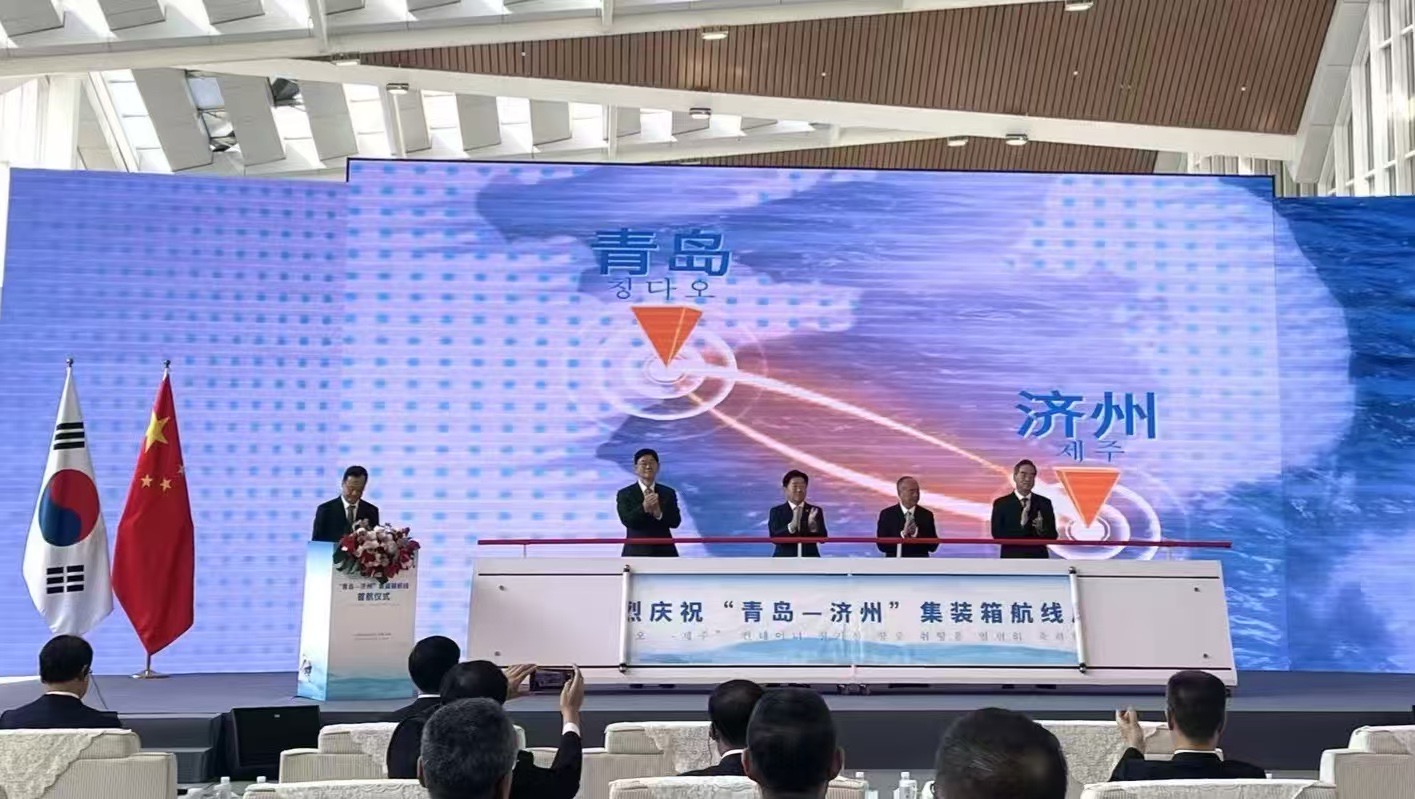 10月16日(周四),柳昌秀总领事出席在青岛邮轮母港举行的济州-青岛集装箱航线首航 仪式。 济州道知事吴怜勋、山东省委书记林武、青岛市委书记曾赞荣等济州道、山东省、青岛 市地方政府主要领导和相关人士出席此次首航仪式,庆祝济州-青岛定期集装箱航线开通。 同时,首航的‘SMC RIZHAO’轮将在仪式结束后驶离青岛邮轮母港,计划于10月18日上 午抵达济州港。