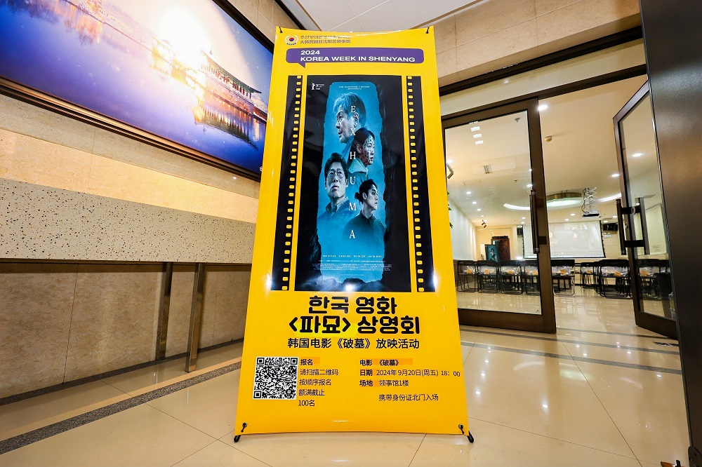 □ 韩国总领事馆在领馆业务受理大厅举行了9.20.(周五)最新韩国电影《破墓》上映会,约有80多名观众参加,让人切实感受到了韩国电影的人气。