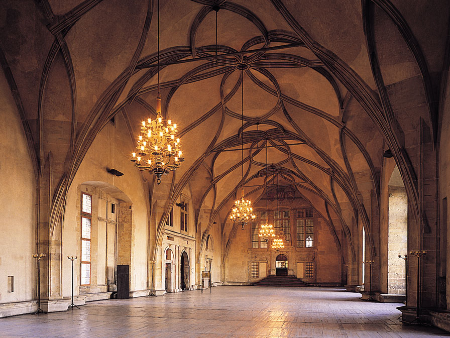 ㅇ거대한 후기 고딕양식의 창문을 가지고 있는 블라디슬라브 홀은 중세 후기 고딕 양식의 우수성과