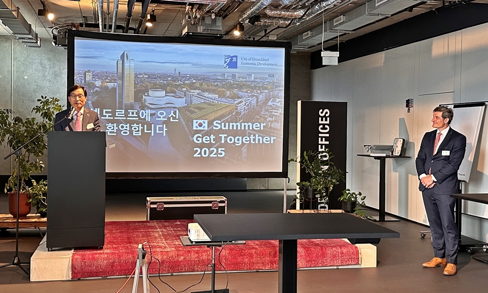 Leiter MIN, Jaehoon nahm am Mittwoch, den 27. August, an dem von der Stadt Düsseldorf ausgerichteten „Summer Get-Together for Korean companies and partner institutions“ teil. In seiner Ansprache zog er eine Bilanz der bisherigen Zusammenarbeit zwischen koreanischen und deutschen Unternehmen in Nordrhein-Westfalen (NRW), ermutigte die anwesenden Unternehmensvertreter und äußerte den Wunsch, die enge Kooperation auch künftig fortzusetzen. Außerdem erörterte er in einem Gespräch mit dem Beigeordneten der Stadt Düsseldorf, Christian Zaum, Unterstützungsmöglichkeiten für die vor Ort ansässigen koreanischen Unternehmen.