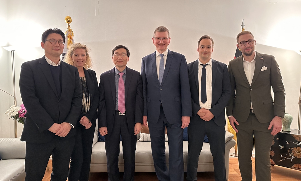 민재훈 분관장은 10월 7일(화) NRW 내무부 Peter Mosch 범죄수사국장, Katja Kruse 국제협력국장, Maik Pohl 선임연구원, Jonas Becker 연구원을 관저로 초청하여, 그간 한-독 과학치안 협력 성과를 평가하고, 차후 국제치안산업대전(KPEX) 및 경찰장비대전 컨퍼런스(GPEC) 참석과 경찰 R&D 파트너십 제고 방안을 논의하였습니다.