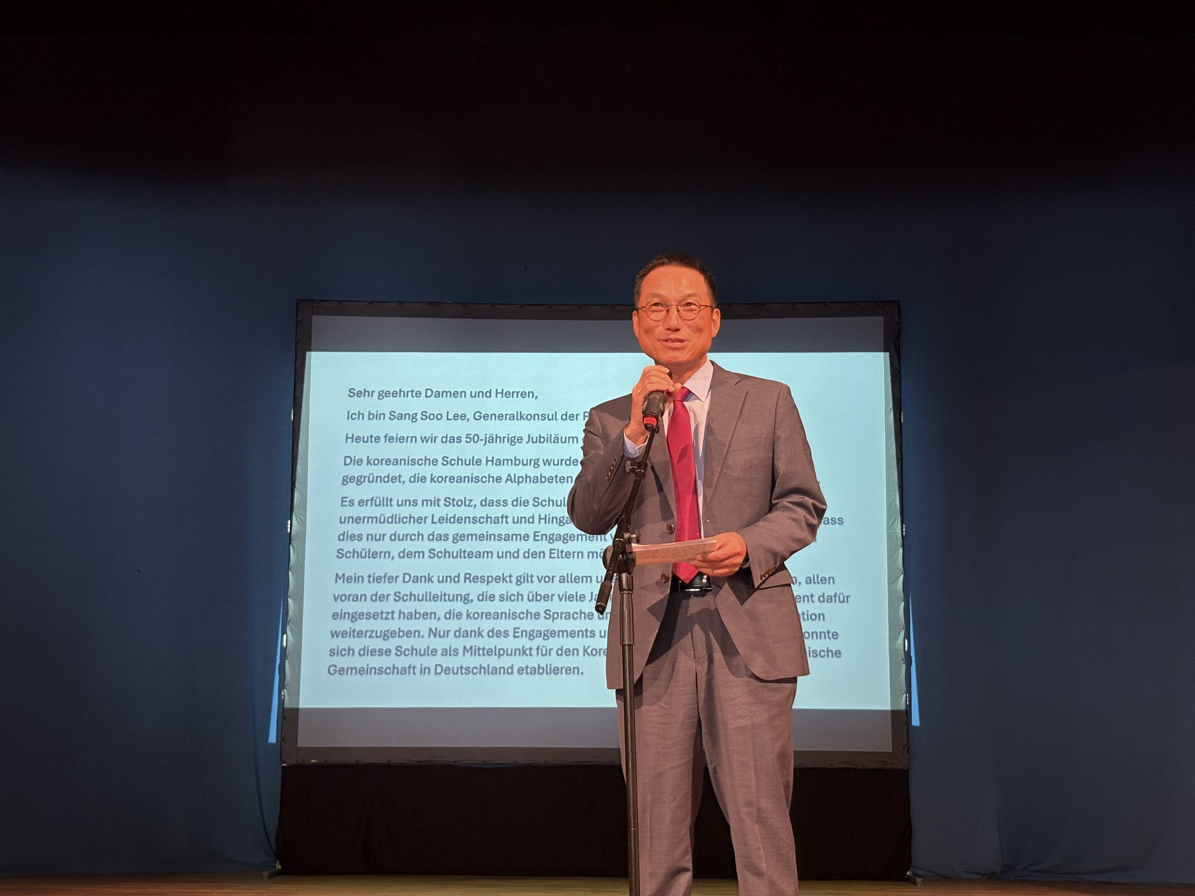 Am 14. Juni nahm Generalkonsul Sang Soo Lee an der Feier zum 50-jährigen Jubiläum der Koreanischen Schule Hamburg teil. Er würdigte den langjährigen Einsatz der Lehrkräfte und Verantwortlichen der Schule, die seit vielen Jahren eine zentrale Rolle bei der Vermittlung der Koreanischen Sprache und als Mittelpunkt der koreanischen Gemeinschaft spielen. In seinem Grüßwort hob er insbesondere die sprachliche Exzellenz der koreanischen Sprache hervor.