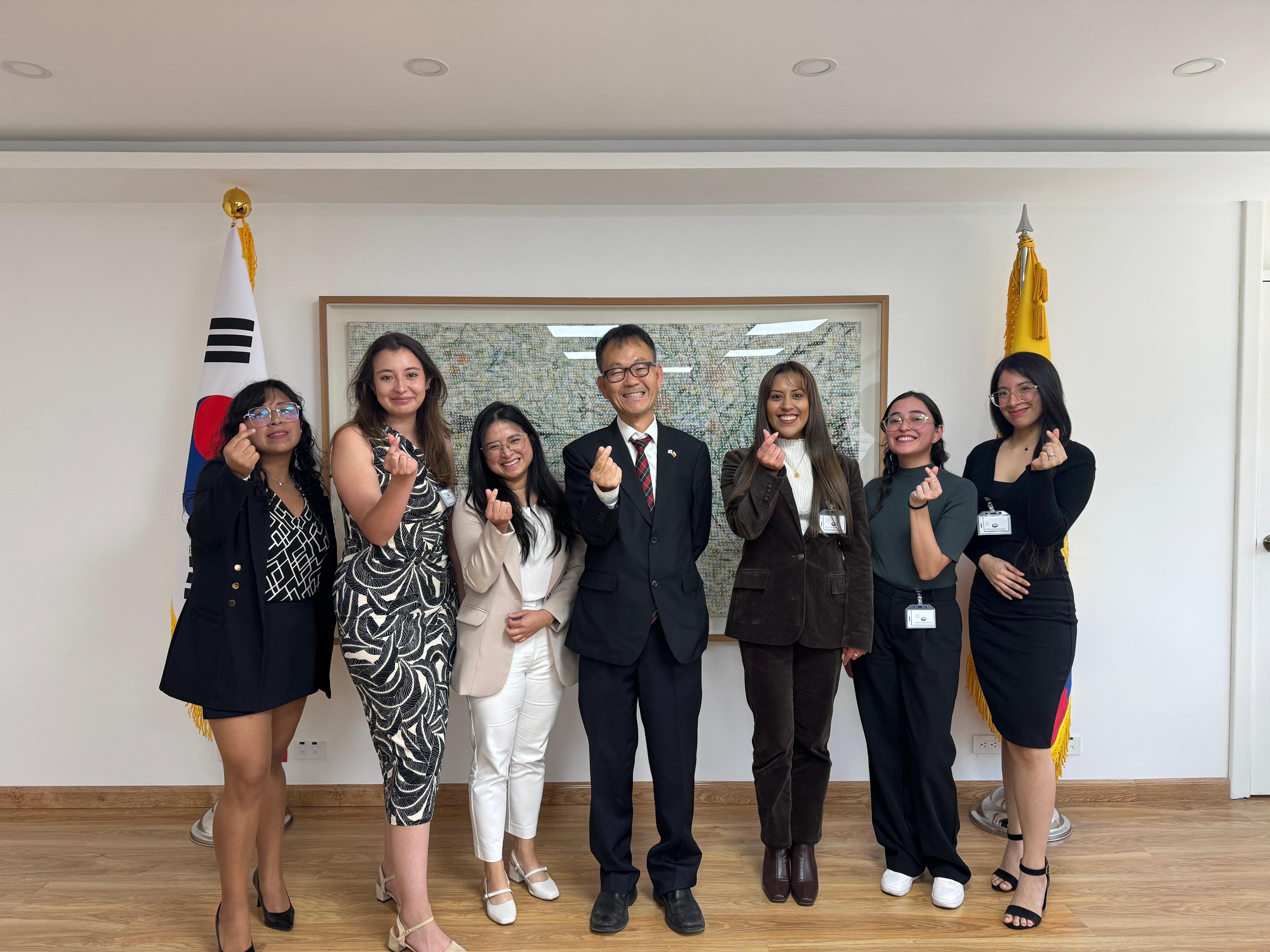 El viernes 1 de agosto de 2025, el embajador Jae Hyun Shim organizó un encuentro para los estudiantes ecuatorianos que fueron seleccionados como becarios del Programa de Becas GKS (Global Korea Scholarship) para Estudios de Posgrado 2025, con el fin de felicitarlos por su admisión final y animarlos a desempeñar el papel de nexo en el fortalecimiento de las relaciones entre Corea y Ecuador.