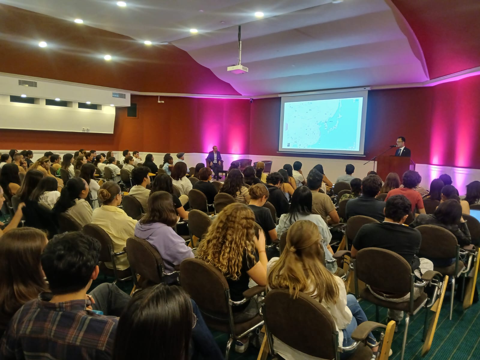 학생들은 질의응답시간에 최근 북한의 경의, 동해선 연결 도로 폭파 사건의 의도와 영향, 저출산 문제에 대한 정부의 대책 등에 대해 질문했습니다. 또한, 현재 에콰도르가 겪고 있는 전력위기 대안으로 원자력에너지 도입 가능성과 한국의 원자력 이용 현황 등에 대해서 문의하는 등 한국에 대해 높은 관심을 표명하였습니다.