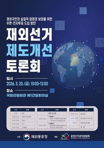 재외동포청은 재외선거제도 개선을 위해「︎재외선거 제도개선 토론회」︎를 개최할 예정입니다.