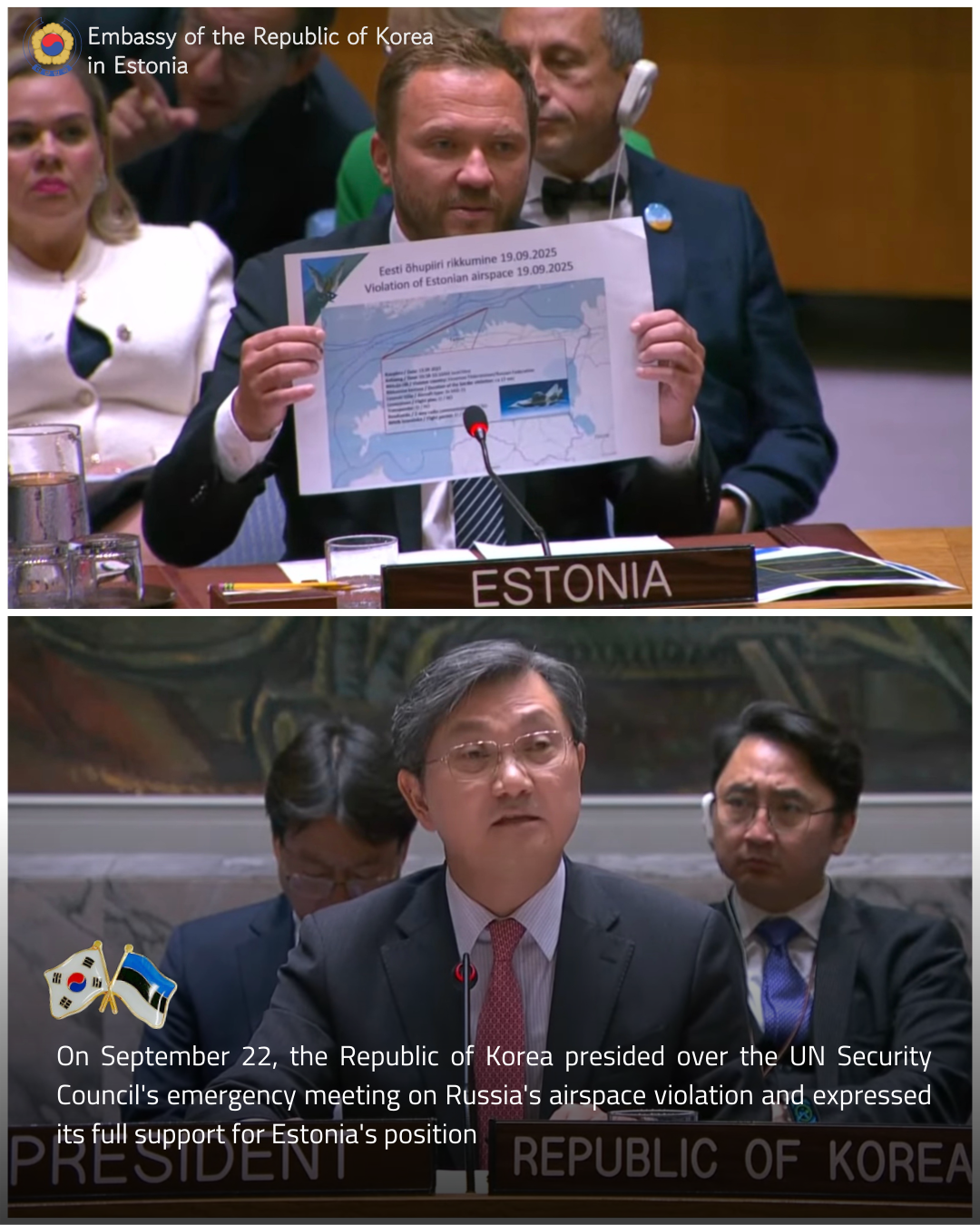 On September 22, the Republic of Korea presided over the UN Security Council’s emergency meeting on Russia’s airspace violation and expressed its full support for Estonia’s position.