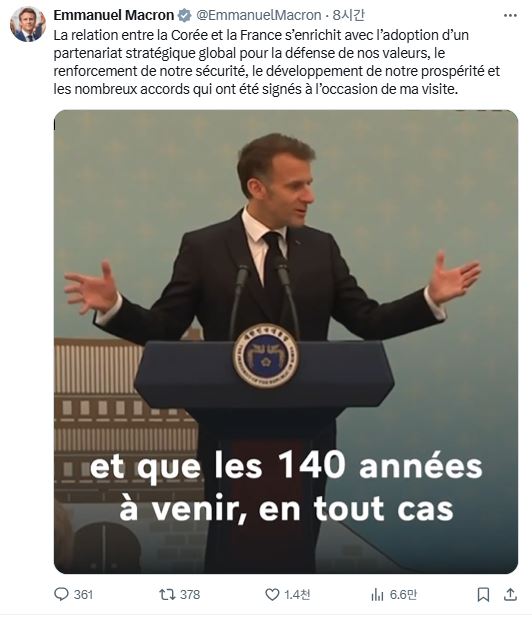마크롱 대통령은 국빈 방한 둘째 날 주요 일정에 대한 소회를 소셜미디어(X)를 통해 공유하였습니다.