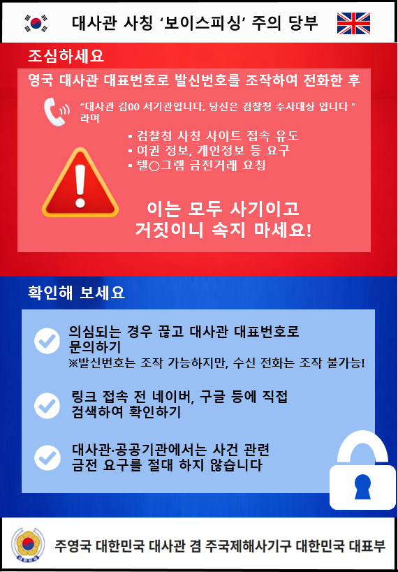 [안전공지] 대사관 사칭 '보이스피싱' 주의 당부