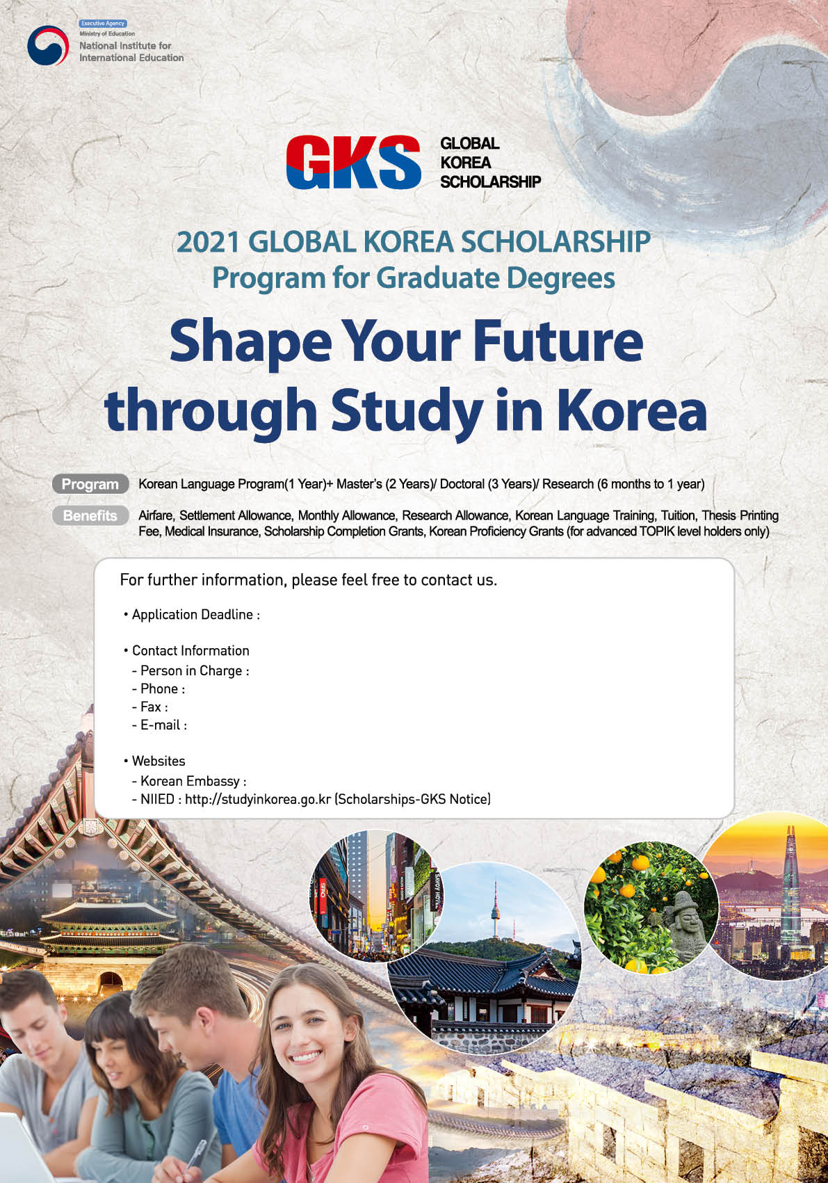 Information about “2021 Global Korea Scholarship for Graduate Degrees” is available on
