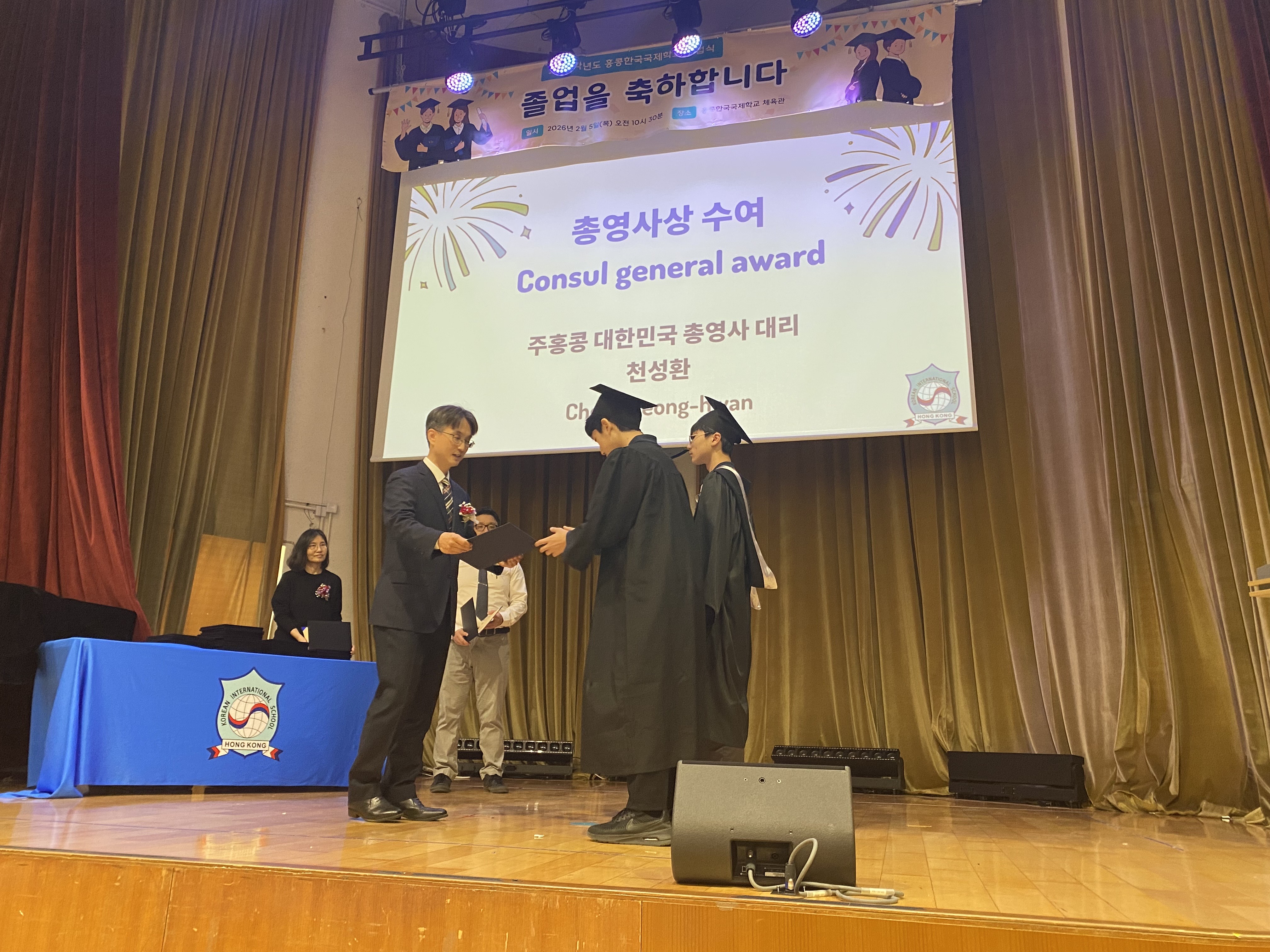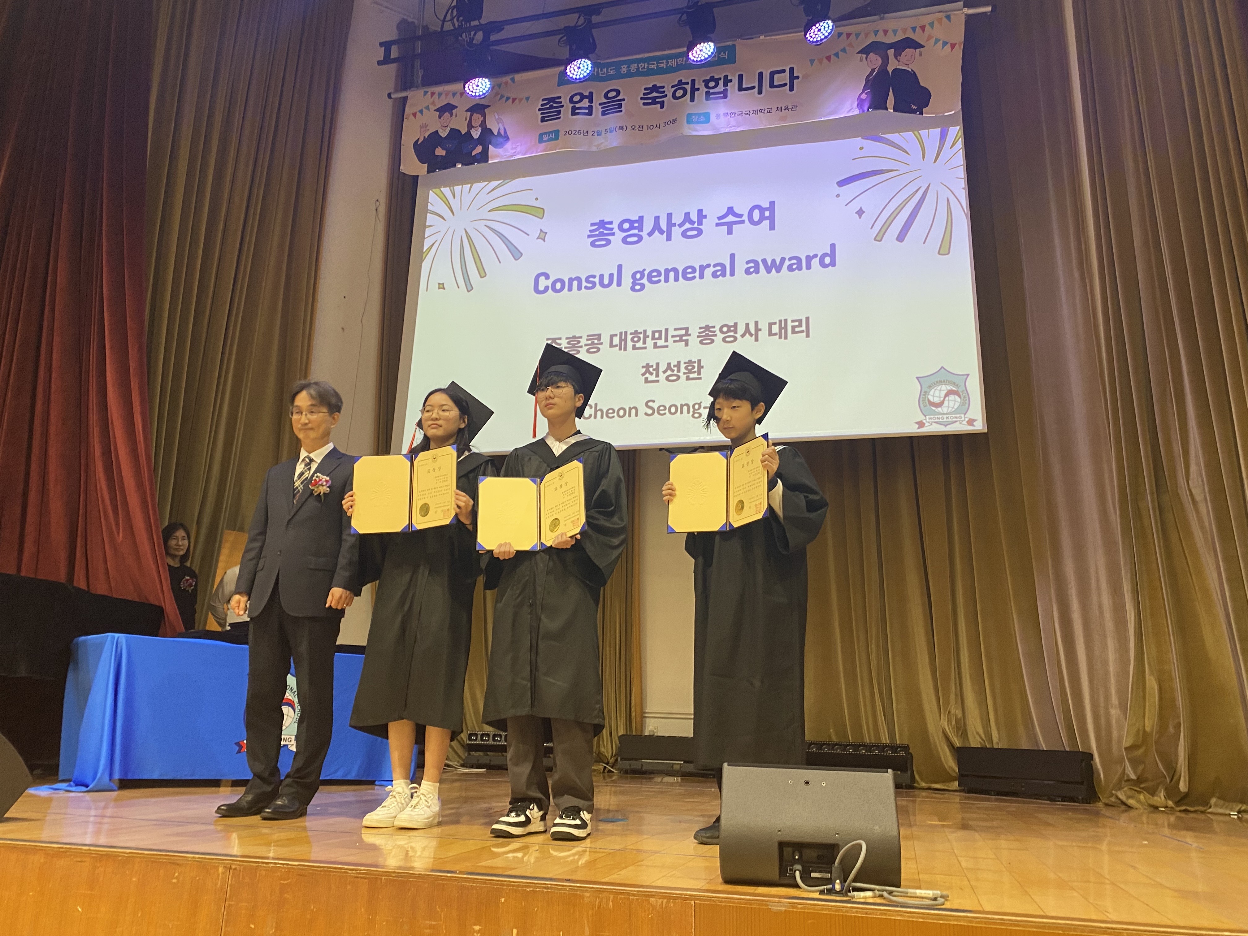 천성환 총영사대리는 2026.2.5.(목) 2025학년도 홍콩한국국제학교 졸업식에 참석하여 졸업생 35명(유치원 6명, 초등부 9명, 중등부 14명, 고등부 6명)의 졸업을 축하하고, 새로운 출발을 응원하였습니다.
