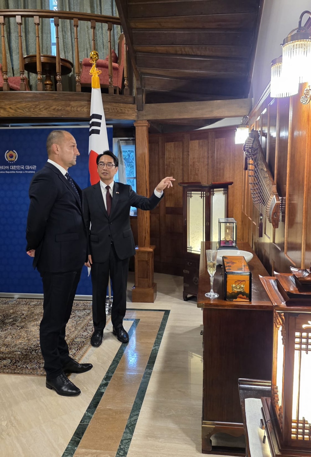Veleposlanik LEE Seungbuhm je pozvao hrvatskog ministra obrane Ivana Anušića i njegovu delegaciju u rezidenciju na večeru, tijekom koje su razmijenili mišljenja o produbljenju suradnje dviju zemalja na području obrane.