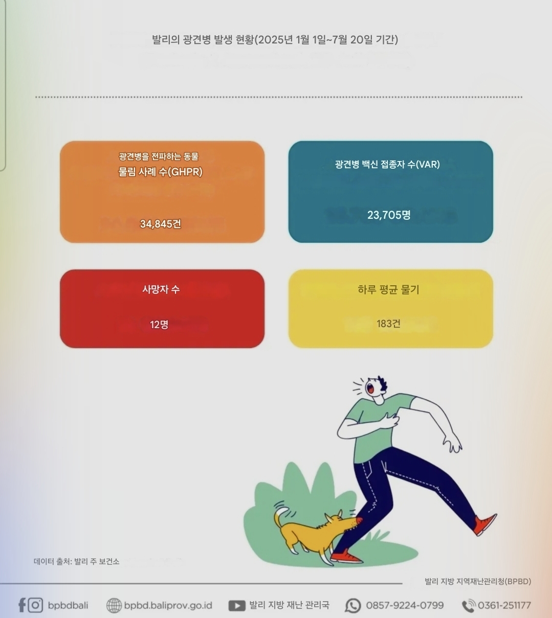 발리 방문 계획이 있으시다면, 여행 전 국내 의료기관에서 광견병 예방 백신을 접종 받으실 것을 적극 권고합니다.