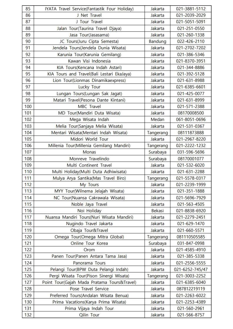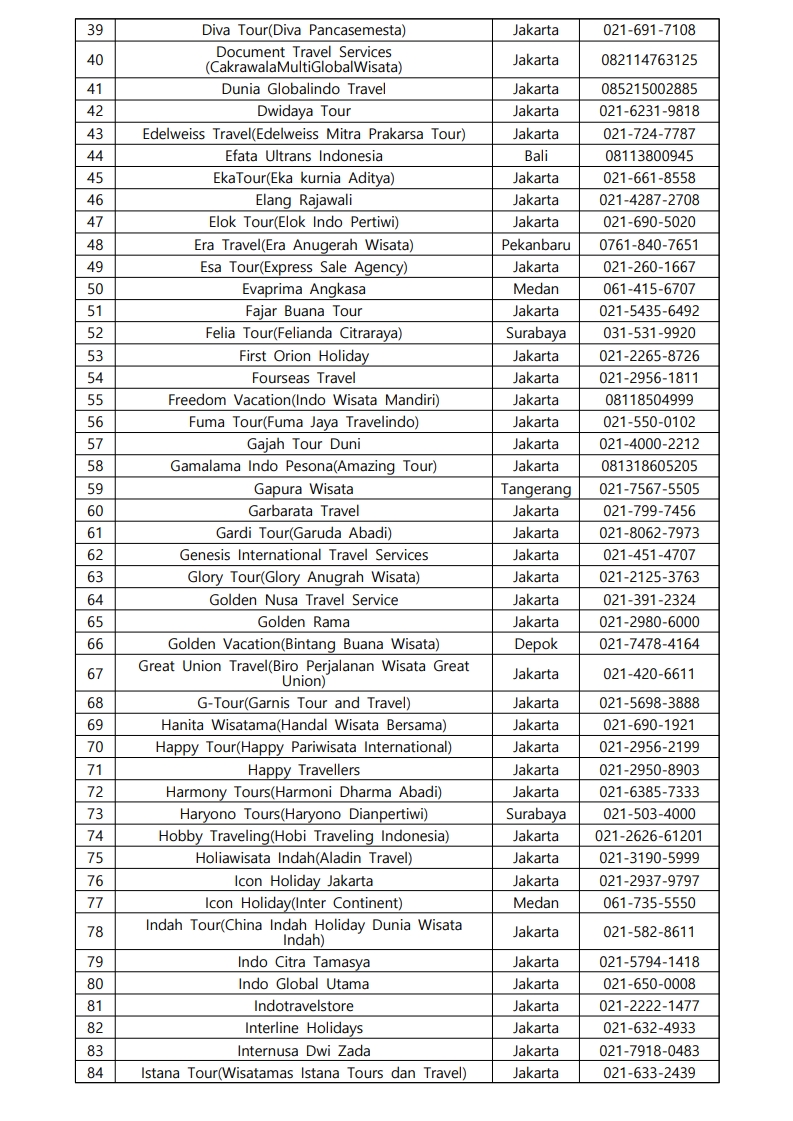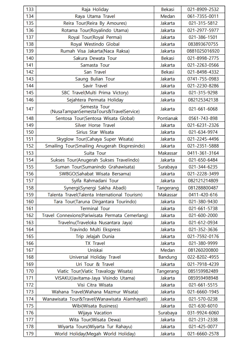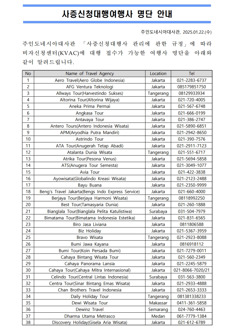 사증신청대행여행사 명단 안내(2025년 1월 22일 기준)
