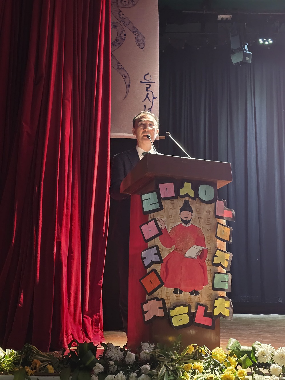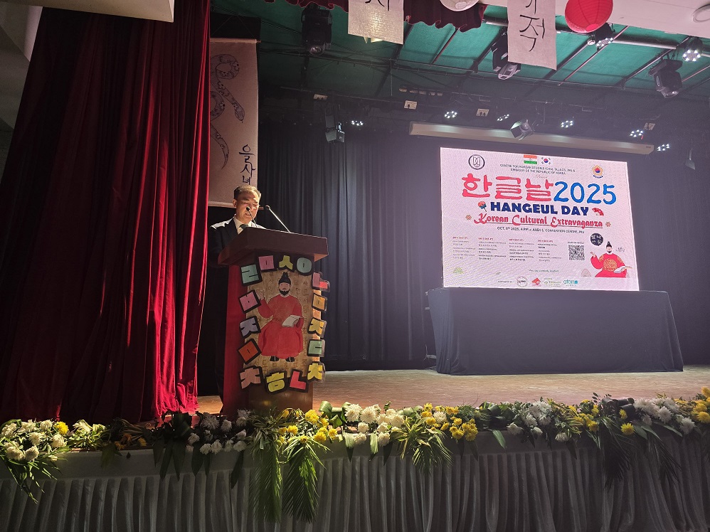 On 8 October(Wed.), Amb. Seongho Lee delivered inaugural remarks at the Hangeul Day event at Jawaharlal Nehru Univeristy. Hangeul Day, celebrated on 9th Oct. every year, commemorates the creation and the proclamation of Hangeul, the Korean alphabet by King Sejong, the Great in 1443. Co-hosted by the Embassy and Jawaharlal Nehru Univeristy(JNU), the 3-day event(8-10 Oct.) features an array of cultural programs including the Korean traditional fan dance and K-pop performances, and a host of contests(calligraphy, singing, essay-writing, etc.) prepared and participated by students studying Korean language not only from JNU, but also from Delhi University and Jamia Millia Islamia.