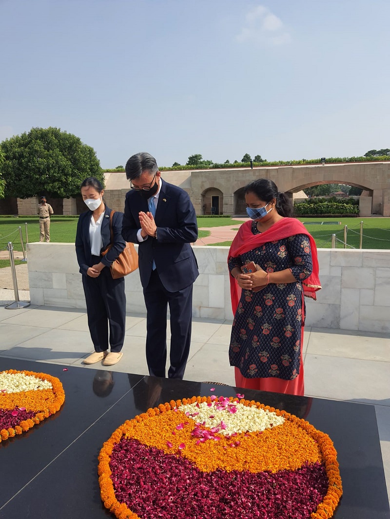 After presenting his letter of credence, Ambassador Chang Jae-bok visited Raj Ghat to pay his respects to Mahatma Gandhi, India's spiritual leader and the father of the nation.