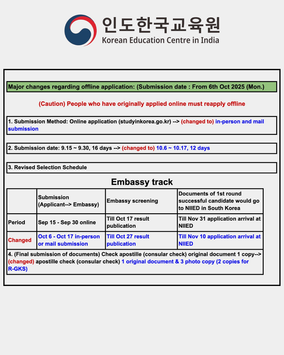 GKS-UG applicants have to send the applications (Korean Education Centre):