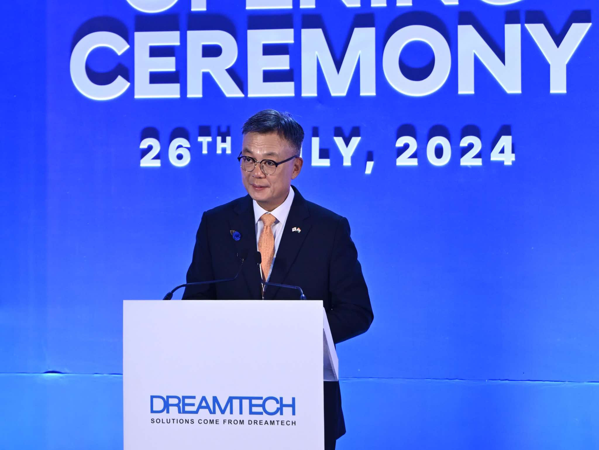 장재복대사는 7.26(금) 노이다 드림텍 공장 준공식에 참석하여 공장 가동 시작을 축하하였습니다. 스마트폰부품, 스마트의료기기, 메모리모듈 및 생체인식센서 등 첨단제품을 생산하는 우리 기업과 인도가 서로 윈윈하는 협력을 이어나가길 기대합니다!