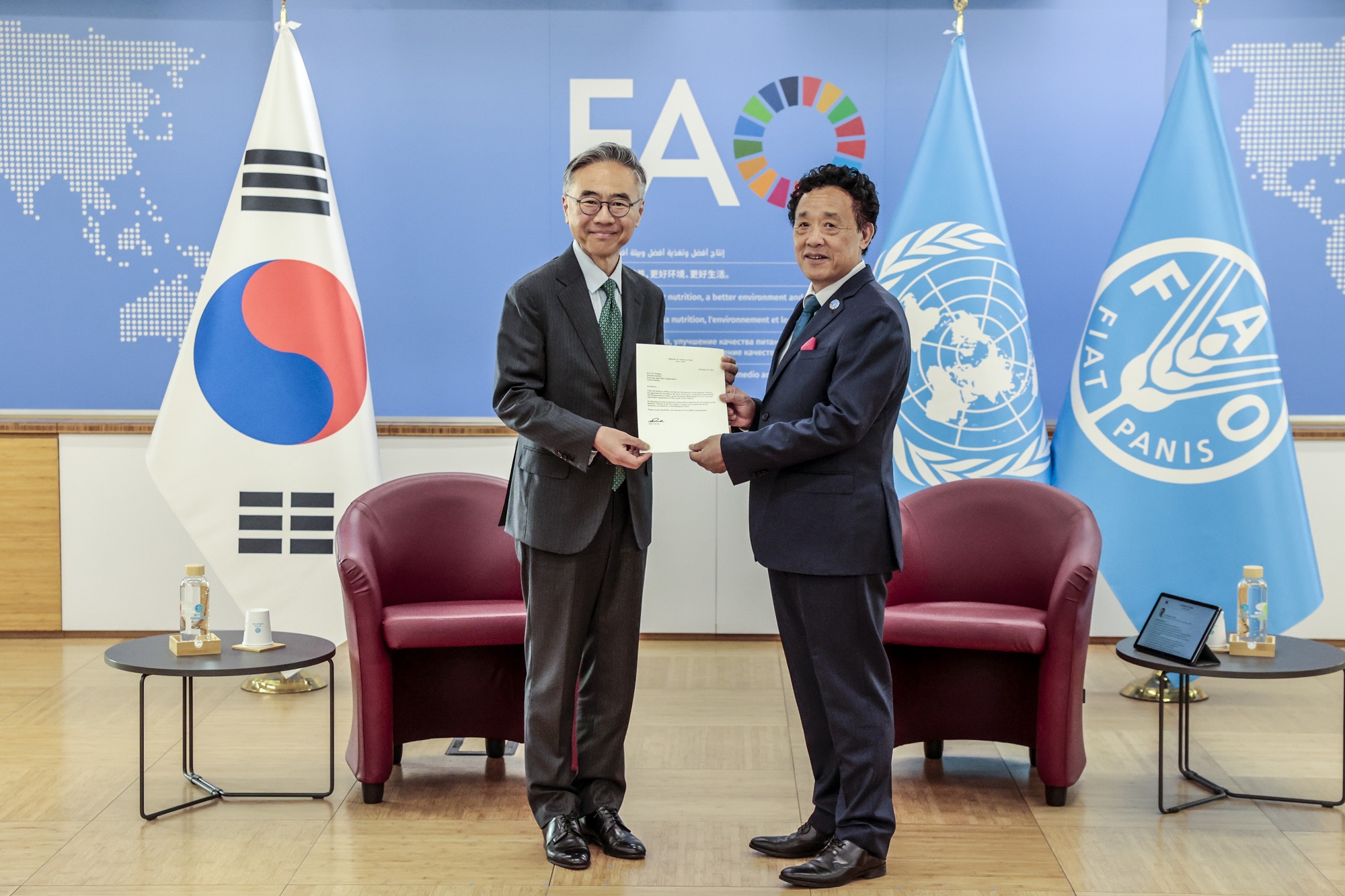 Lunedì 5 maggio, S.E. l'Ambasciatore Kim Choon-goo ha presentato le sue credenziali quale Rappresentante Permanente della Repubblica di Corea al Direttore Generale dell'Organizzazione delle Nazioni Unite per l'Alimentazione e l'Agricoltura (FAO), S.E. il Dott. Qu Dongyu, col quale ha discusso delle modalità per rafforzare la cooperazione tra la Corea e la FAO.