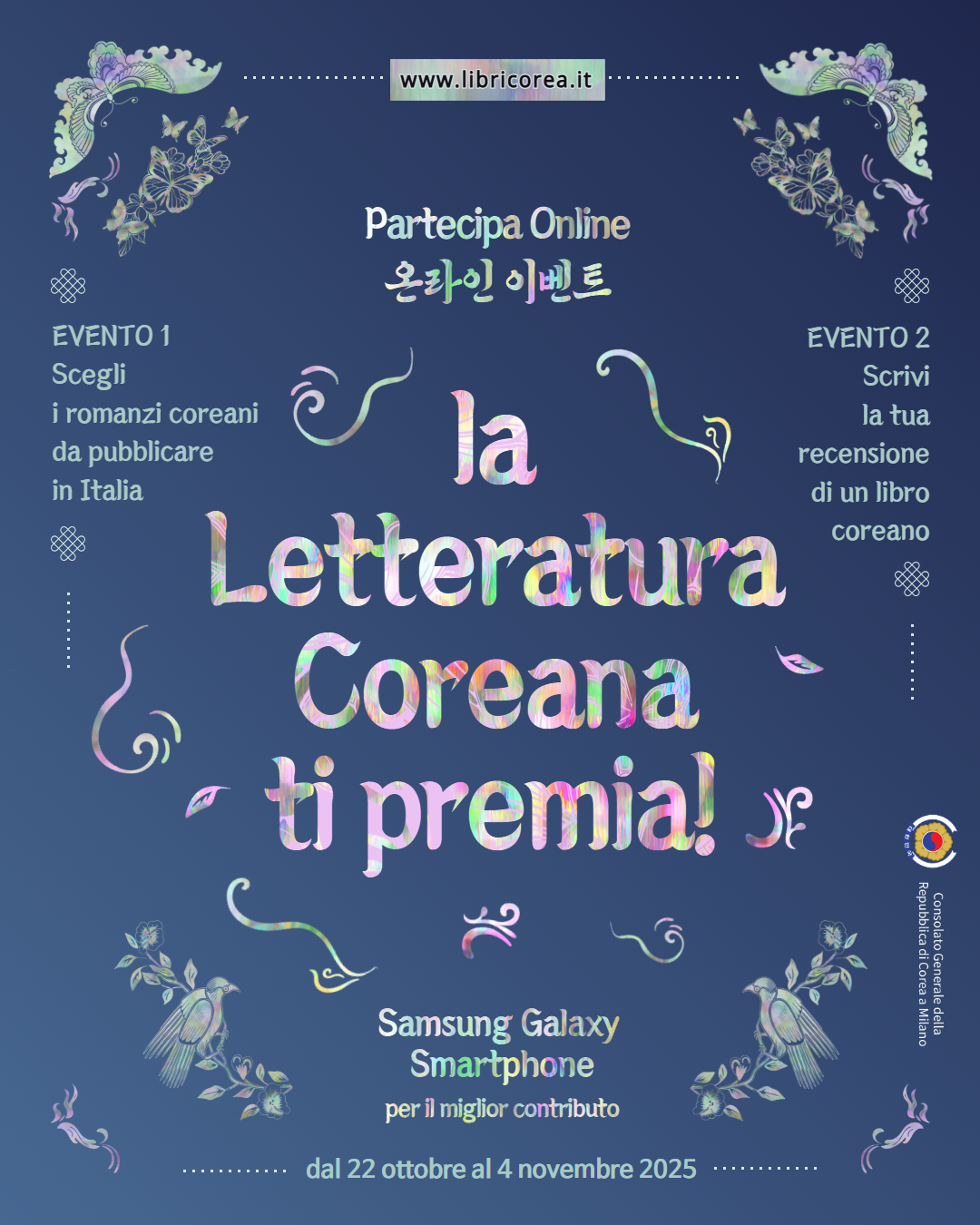 주밀라노총영사관은 이탈리아 내 한국 문학 저변 확대를 위해 이탈리아에 출판된 한국 문학 정보 포털인 www.libricorea.it을 운영하고 있으며, 포털 이용자들을 대상으로 특별한 이벤트를 준비했습니다.