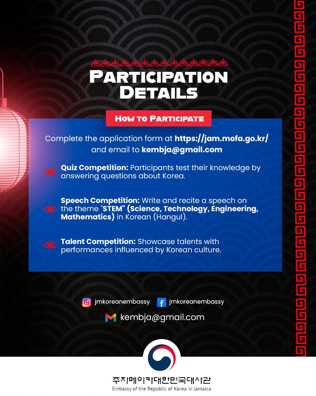 The Embassy of the Republic of Korea can be contacted at (876) 924-2731 for details.