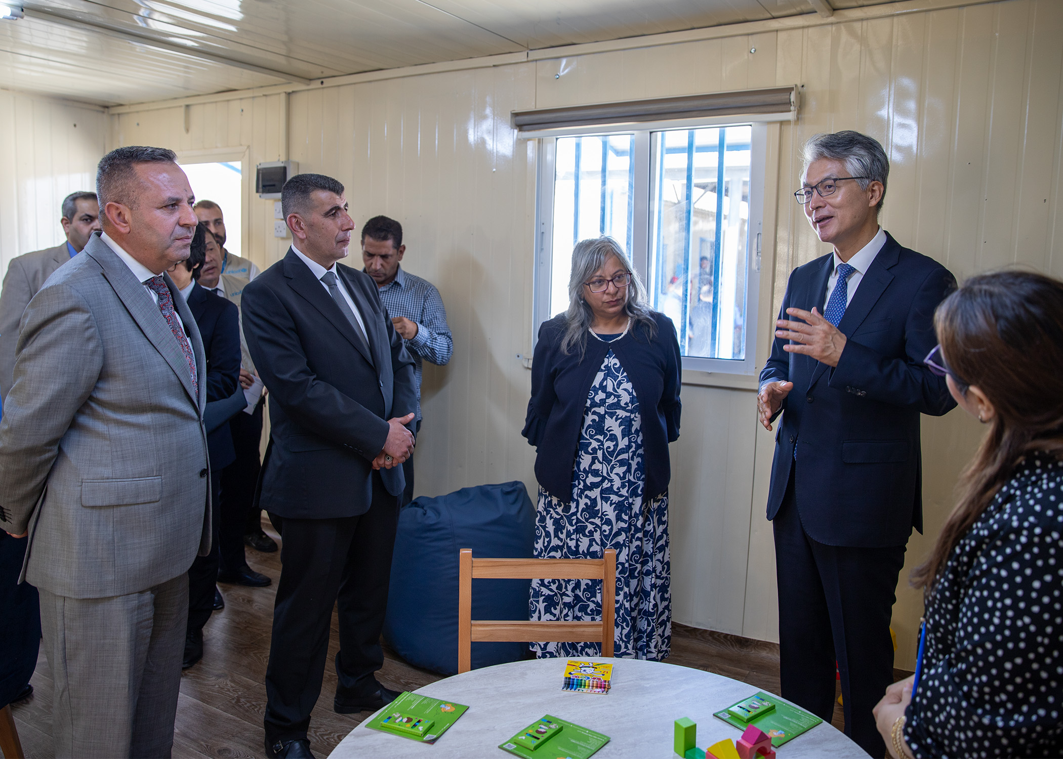 زار السفير كيم بيل-وو، الثلاثاء 9/9، مخيم اللاجئين السوريين في الزعتري، وألقى كلمة تهنئة في حفل افتتاح المرافق الصديقة للأطفال والنساء، والتي سيتم تشغيلها ضمن برنامج اليونيسف لحماية الطفل بدعم من الحكومة الكورية.