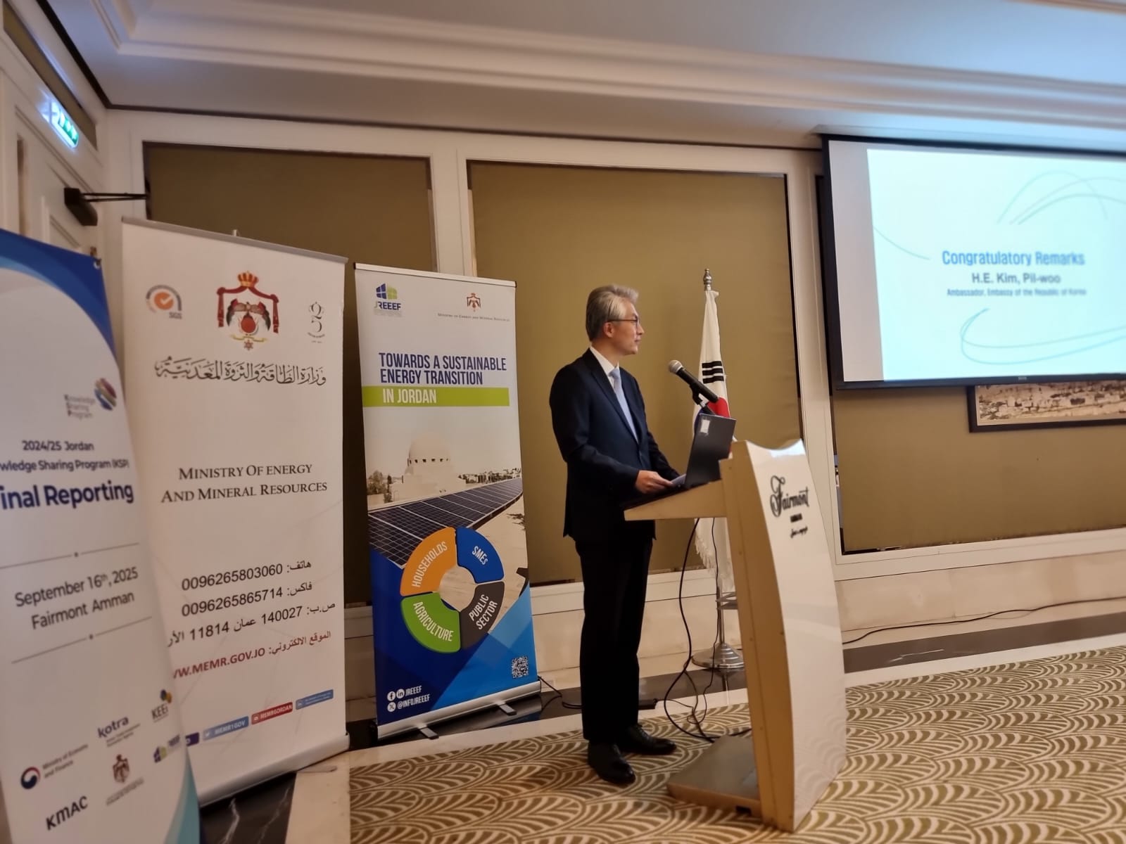 حضر السفير كيم بيل-وو، يوم الثلاثاء 16/9، ورشة العمل الختامية لمشروع تصميم برنامج دعم الطاقة المستدامة (٢٠٢٤-٢٠٢٥) برفقة أماني العزام، الأمين العام لوزارة التعليم العالي والبحث العلمي، ورسمي حمزة، رئيس صندوق الطاقة المتجددة وكفاءة الطاقة (JREEEF)، وقدم كلمات تهنئة.