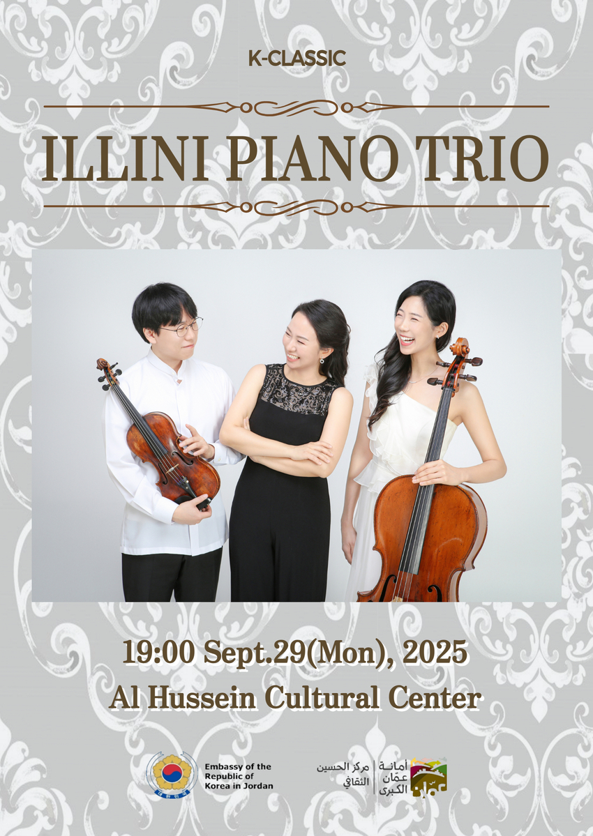 .The Korean Embassy in Jordan will host a classical music concert by "Illini Piano Trio," presenting piano, violin, and cello