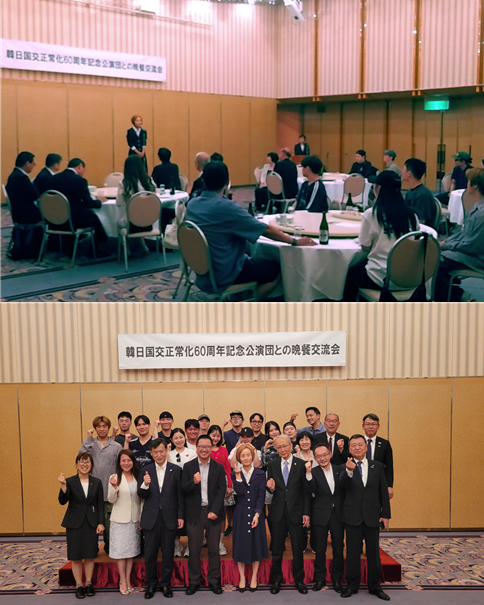 우리총영사관은 6월 18일(수) HBG홀에서 한일 국교정상화 60주년을 기념하여 공연단과의 만찬 교류회를 개최하였습니다. 이번 교류회에서는 히로시마지역에서 한일 관계 증진에 기여해온 각계 주요 인사들과 공연단이 함께하며, 양국 간 문화예술에 대한 이해와 우의를 더욱 깊이 나누는 뜻깊은 시간을 가졌습니다.