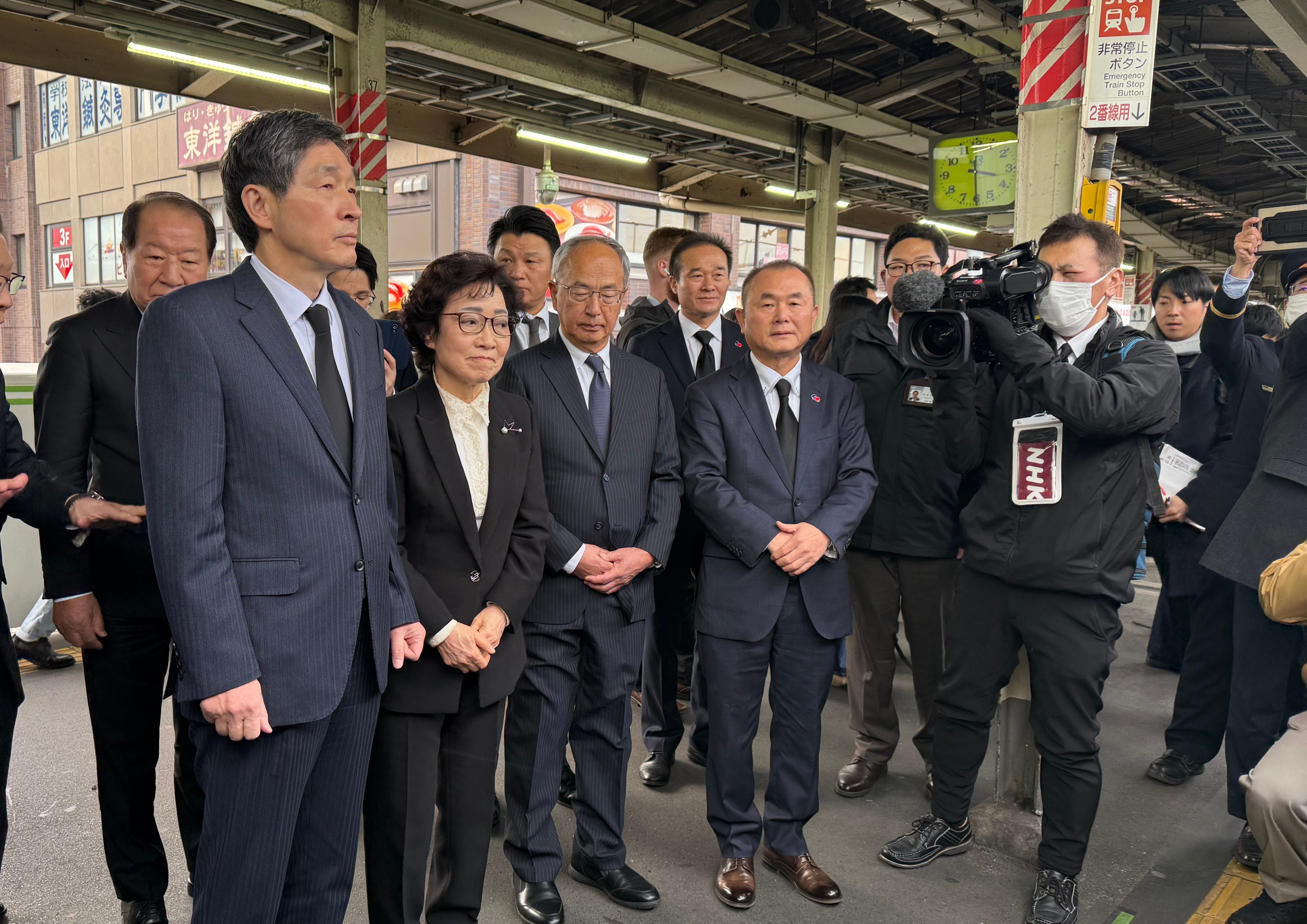 주일본대한민국대사관 이혁 대사는 2026.1.26(월) 15:30 JR 신오쿠보역 현장에서 열린 제25주기 의인 故 이수현 추도식에 참석하여, 故 이수현 의인의 모친, LSH아시아장학회 및 신주쿠한국상인연합회 관계자 등과 함께 추모 동판 앞에서 헌화 및 묵념하여 의인 故 이수현 씨를 추모하였습니다.