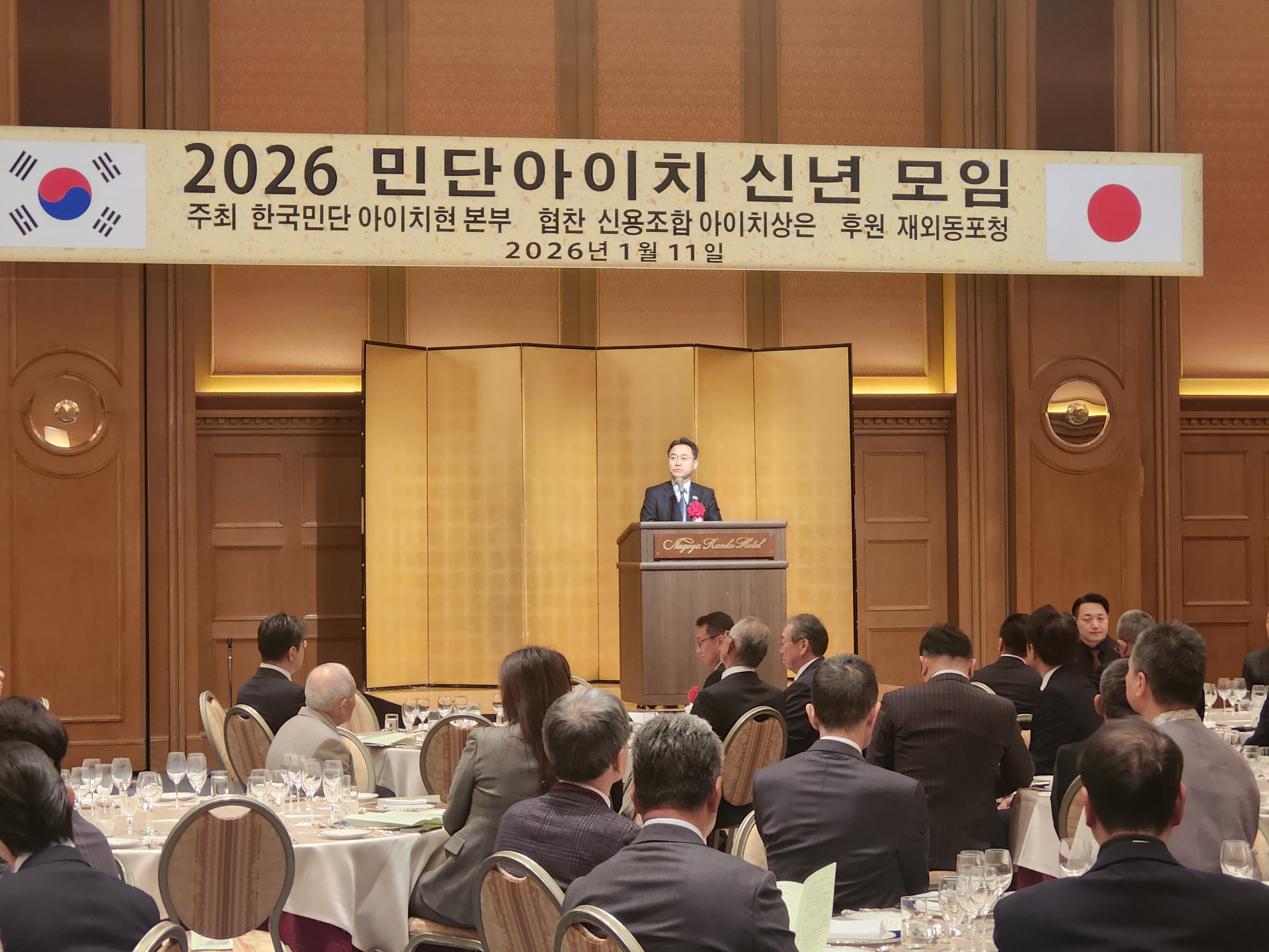 주나고야총영사관 차웅기 부총영사는 1.11.(일) 나고야관광호텔에서 개최된 민단아이치 신년 모임에 참석하여 축사하고 지역사회 동포들을 격려하였습니다. 한일 국교 정상화 60주년을 맞이한 2025년에 이어, 붉은 말의 해인 2026년을 향해 한일 양국이 더욱 미래지향적인 관계로 도약해 나갈 수 있도록 지역사회 동포들의 적극적인 활동과 지지를 당부했습니다.