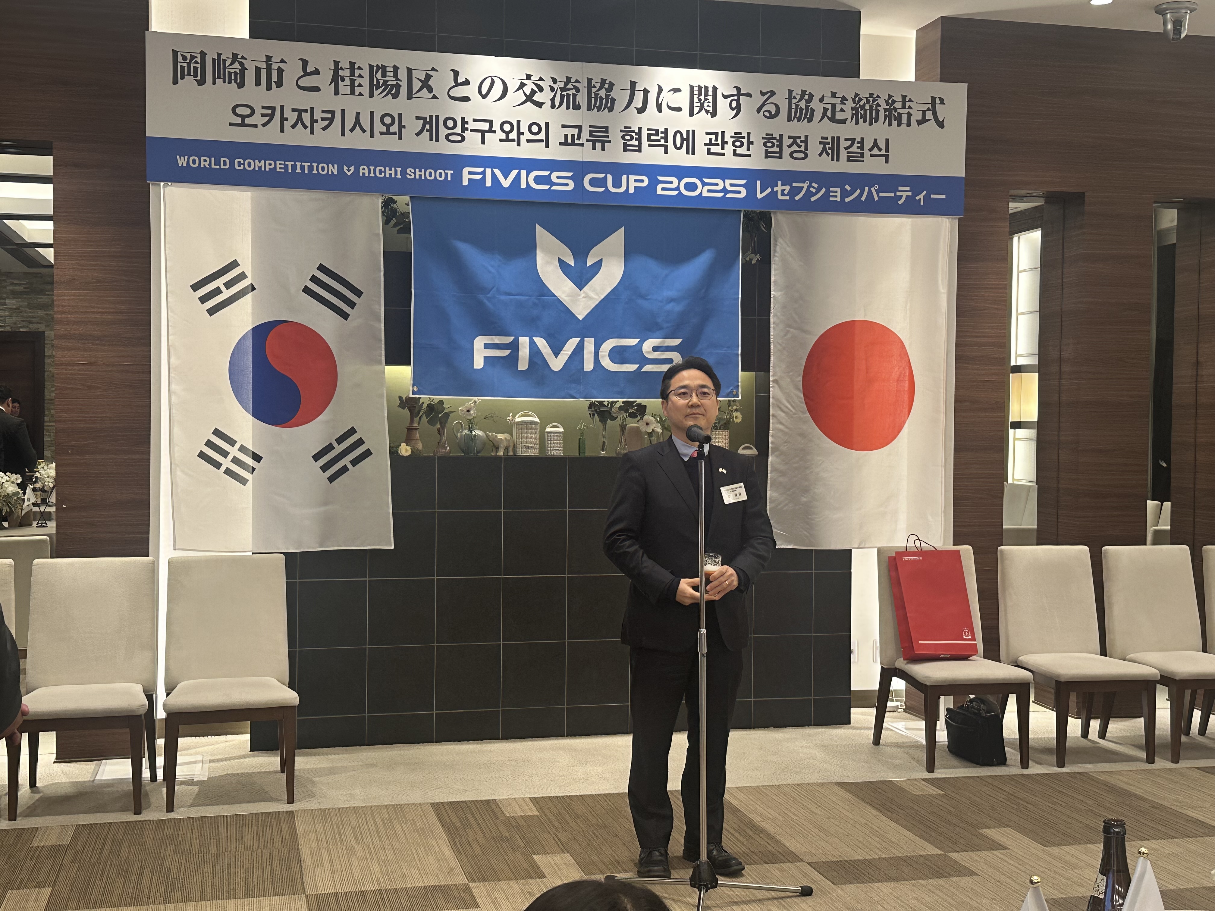 주나고야총영사관 차웅기 부총영사는 1.31.(토), 제4회 FIVICS컵 양궁대회를 찾아 경기에 참석한 우리 선수단을 격려하는 한편, 이어진 인천 계양구 -오카자키시와의 교류 협력에 관한 협정 체결식에 참가, 두 지역의 교류가 스포츠뿐만아니라 향후 문화, 교육, 경제 등 전반으로 확대되는데 지원을 아끼지 않기로 하였습니다.